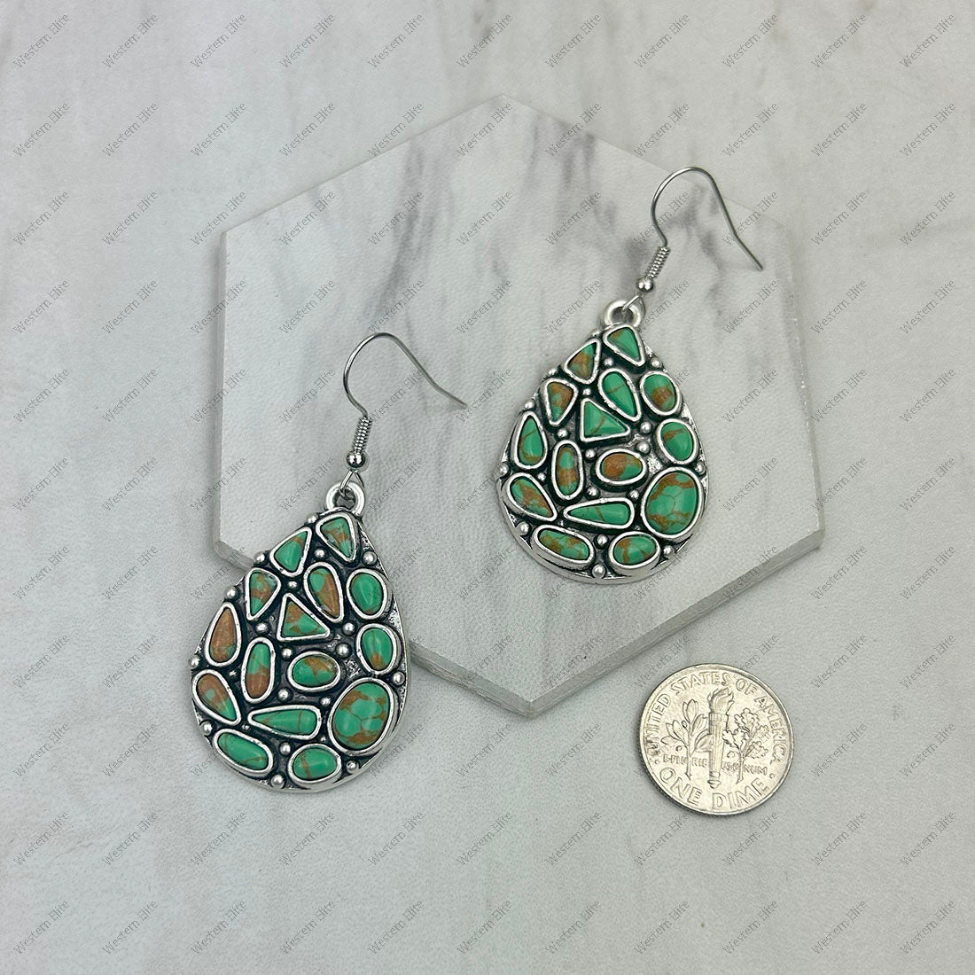 ER250330-03-BLUE Silver metal with blue turquoise stone Teardrop Earrings