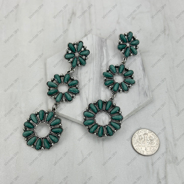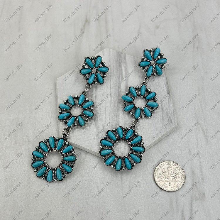 Silver metal with blue turquoise stone flower concho Earrings