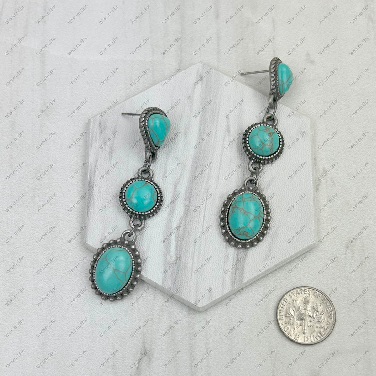 ERZ231205-01 Silver metal with blue turquoise stone concho Earrings