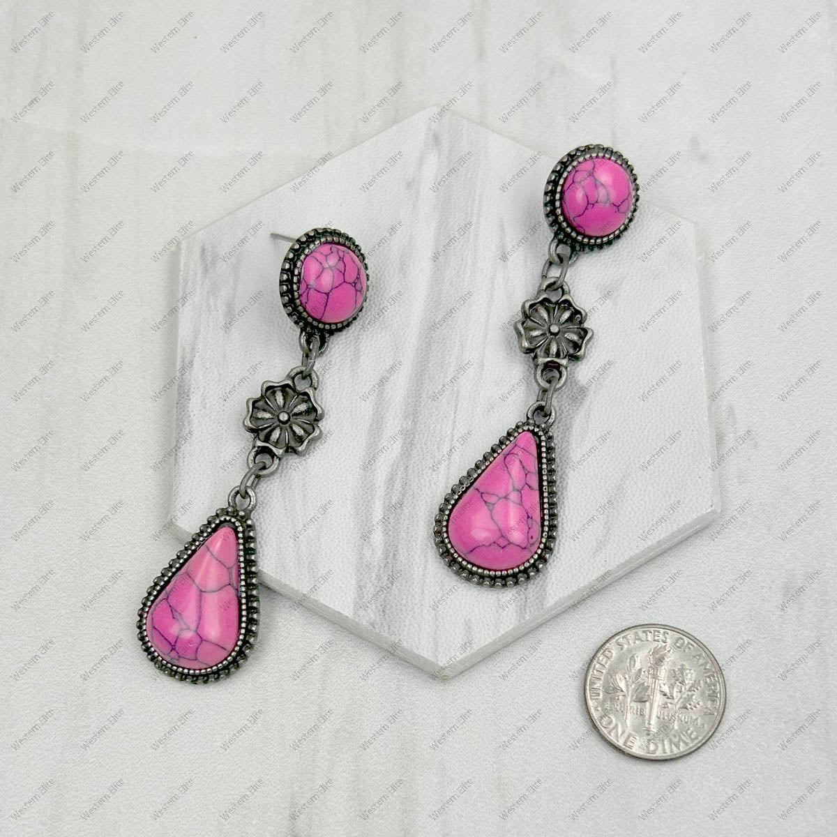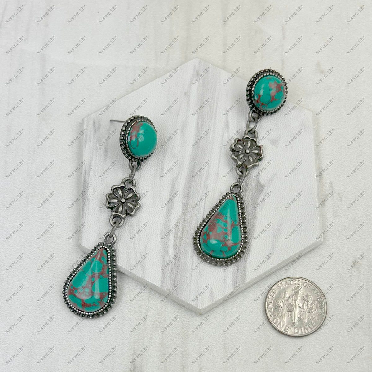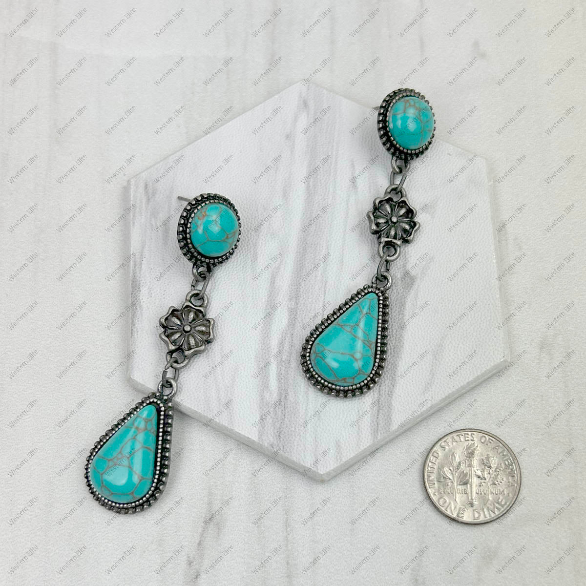 ERZ231205-11 Silver metal with blue turquoise stone concho Earrings