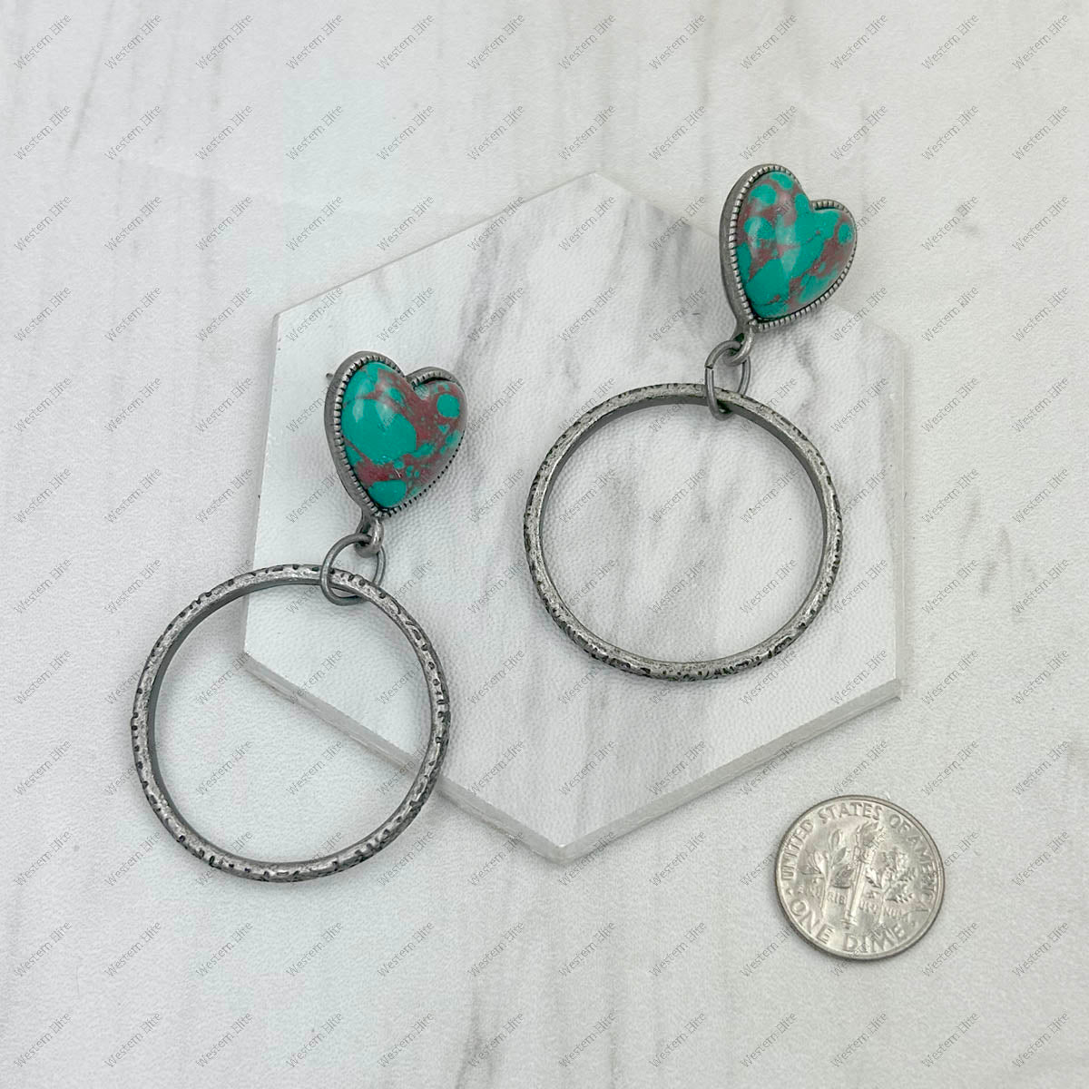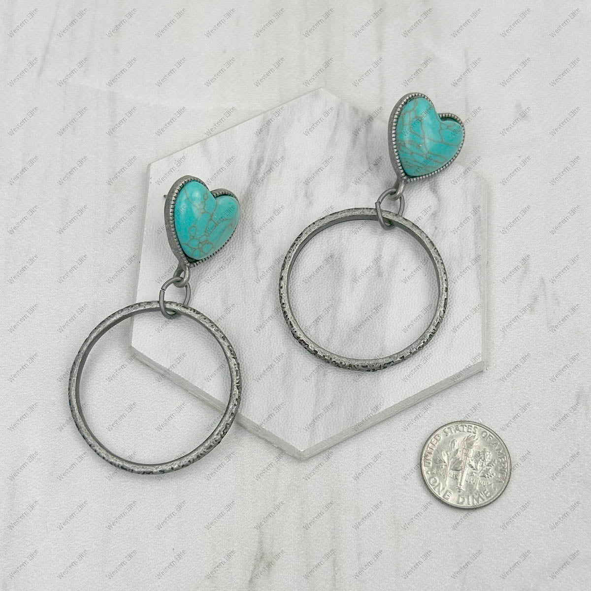 ERZ231205-81 Silver metal with blue turquoise heart stone Earrings