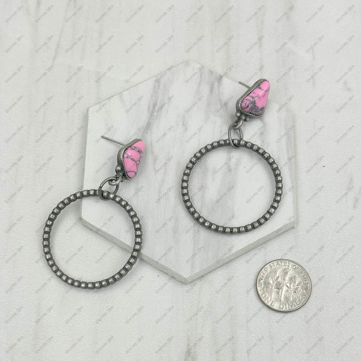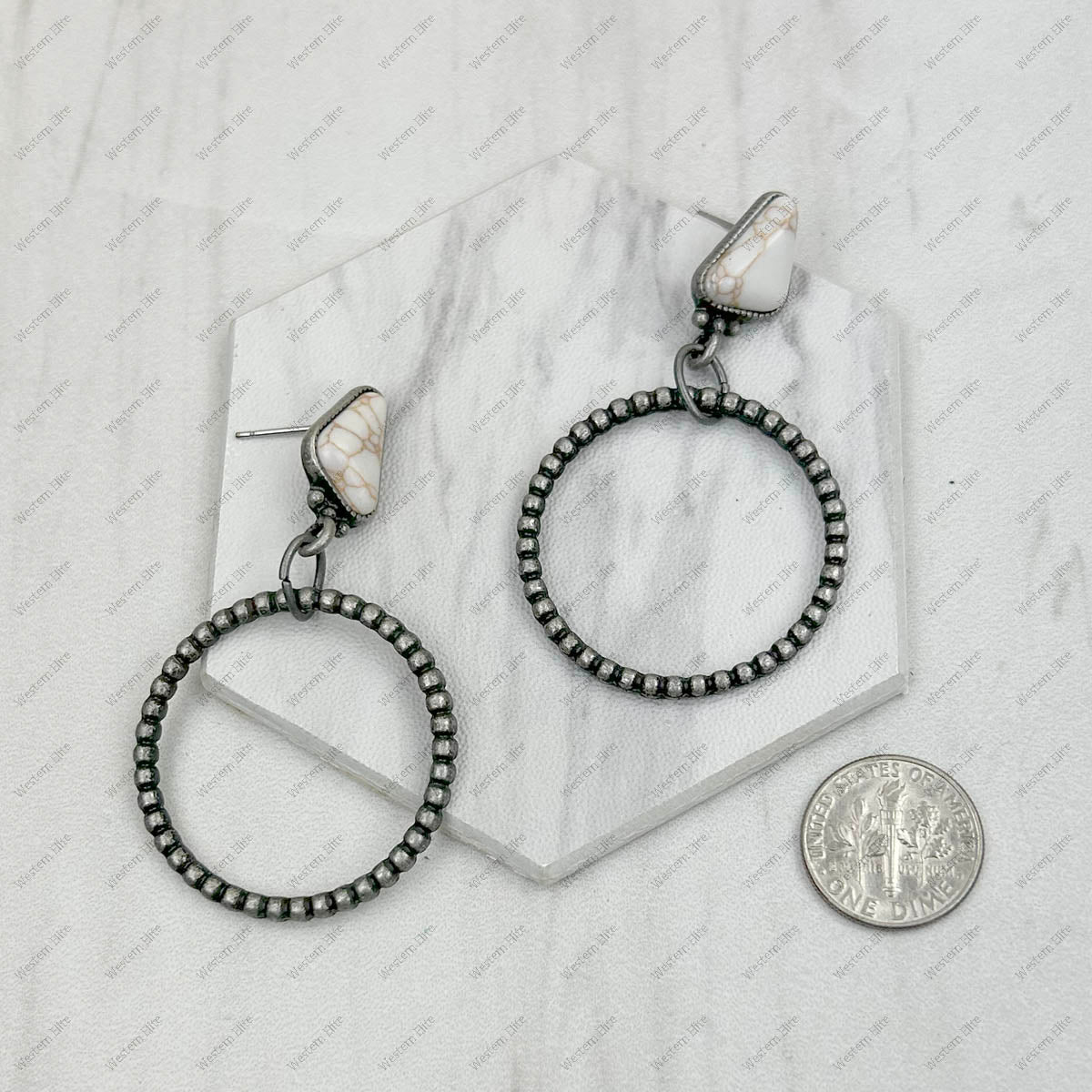 ERZ231205-101 Silver metal circle with blue turquoise stone Earrings