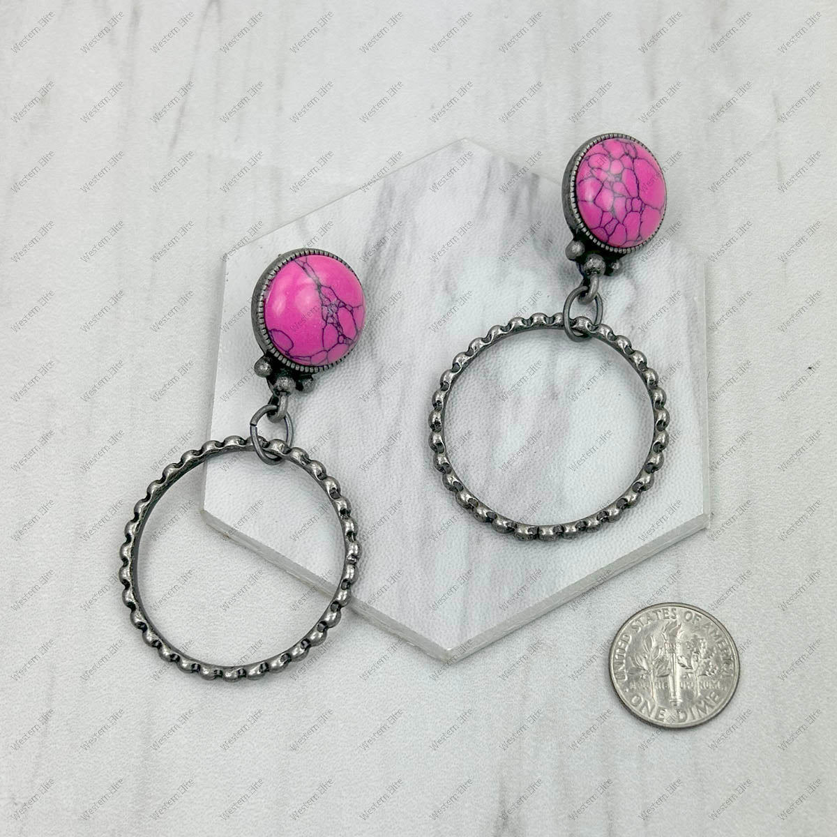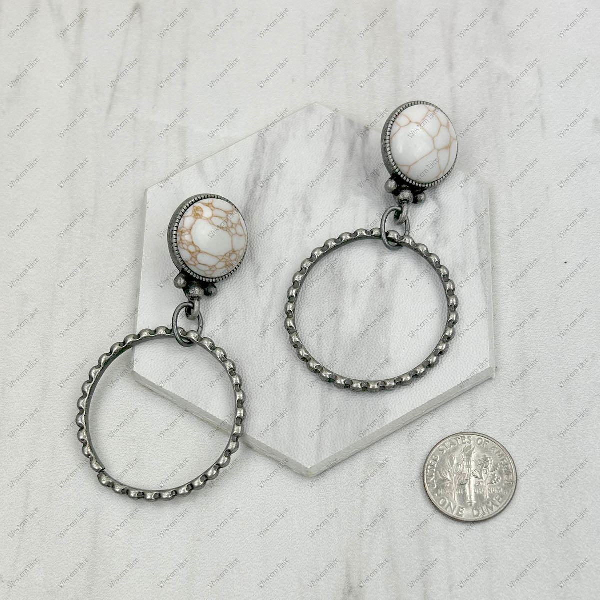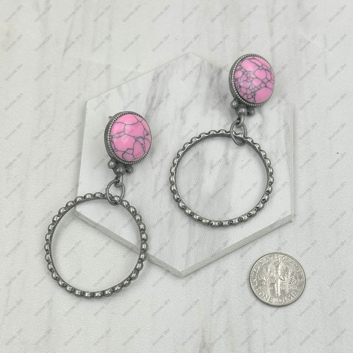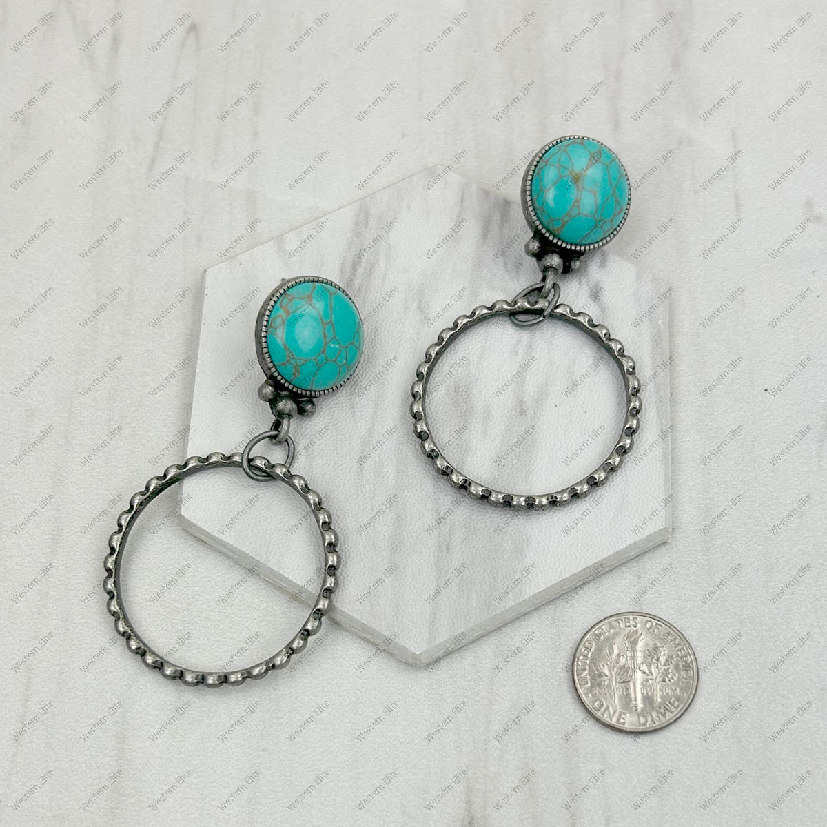ERZ231205-91 Silver metal circle with blue turquoise stone Earrings