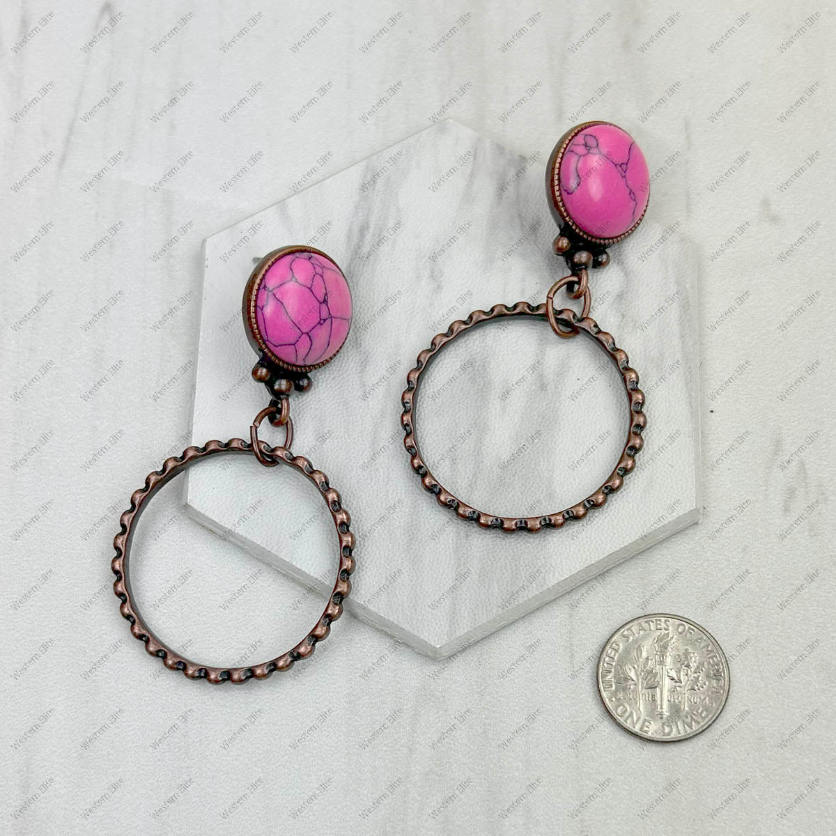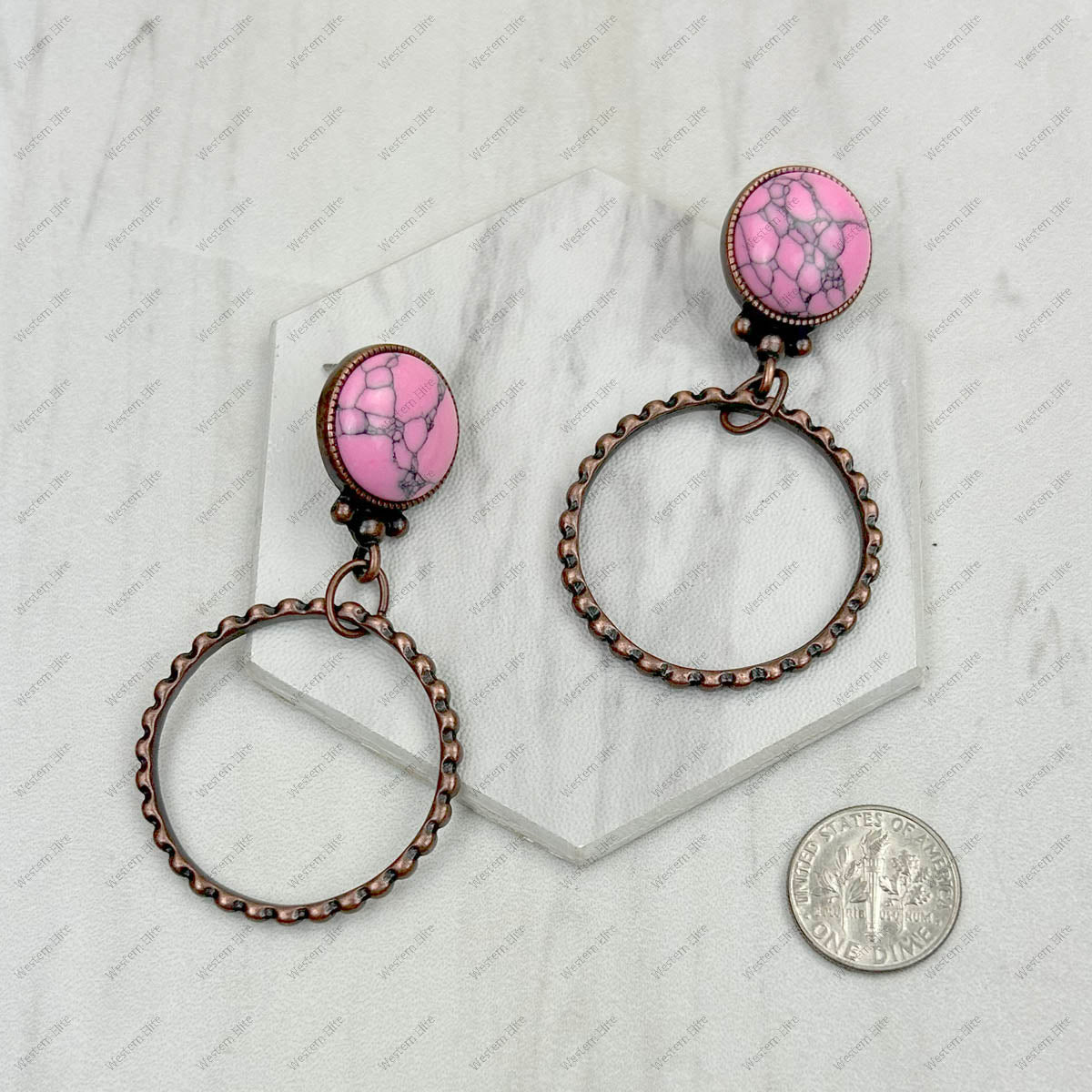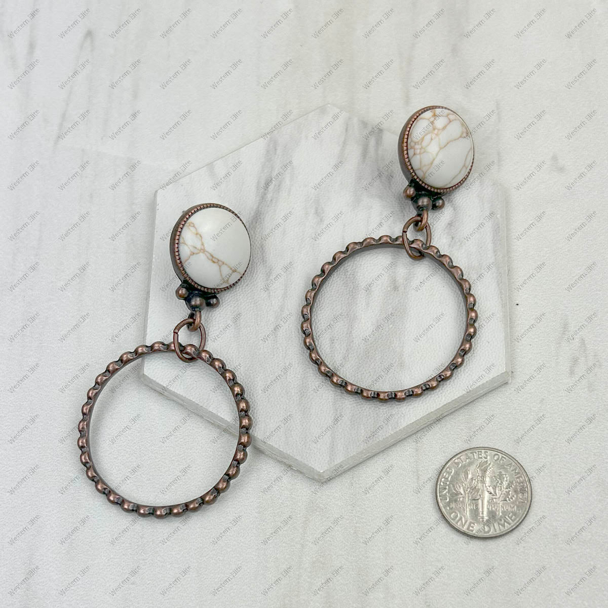 ERZ231205-96 Copper metal circle with blue turquoise stone Earrings