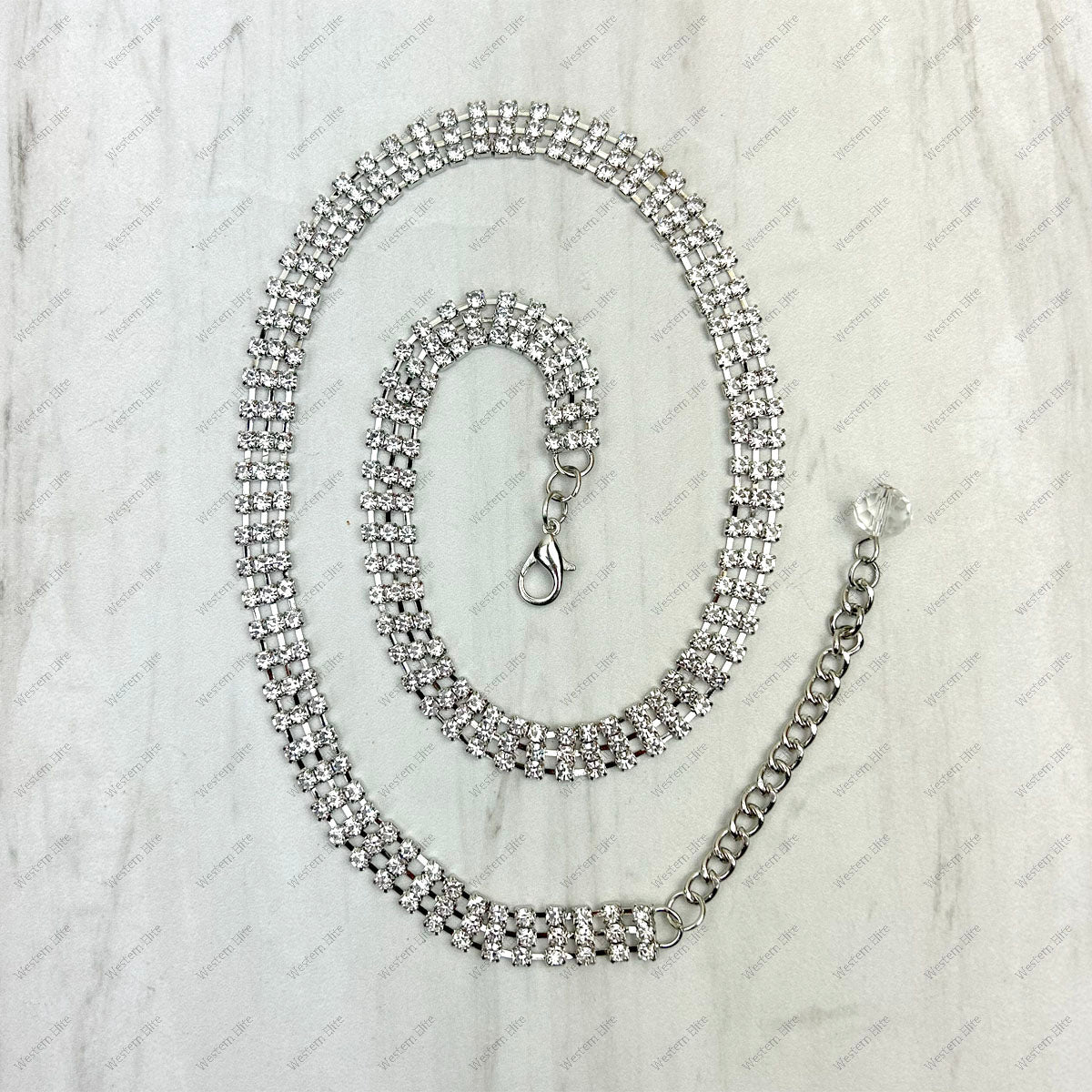 21 inches Silver metal with clear Rylstone beads Hat chain