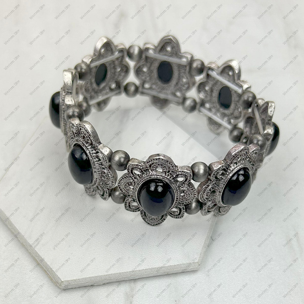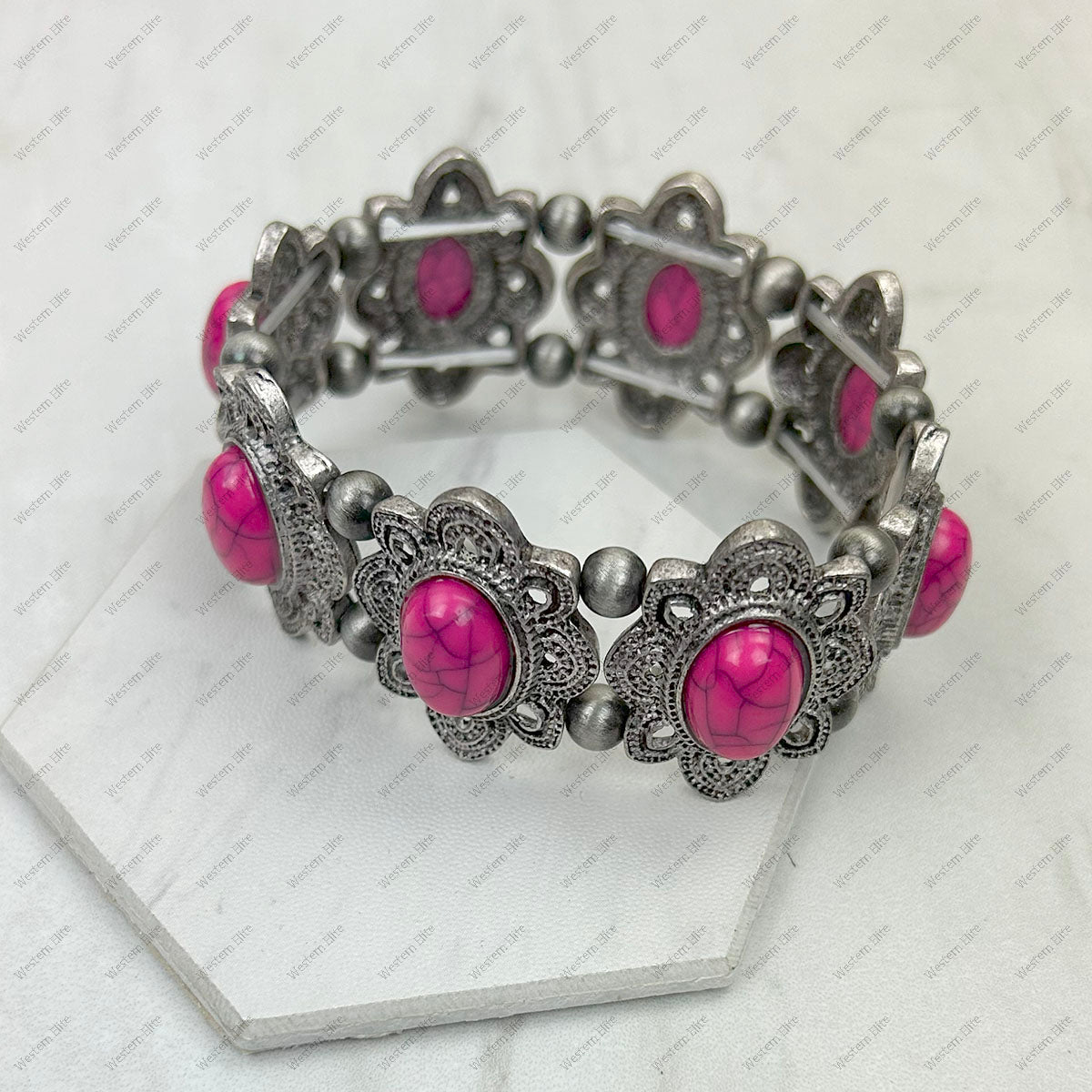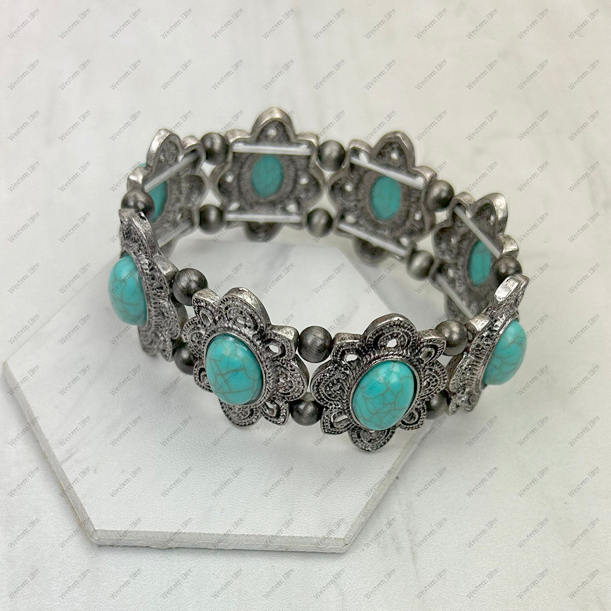 BR241125-01-SILVER-BLUE Silver metal with blue turquoise stone Bracelet