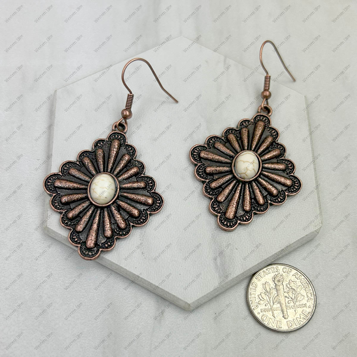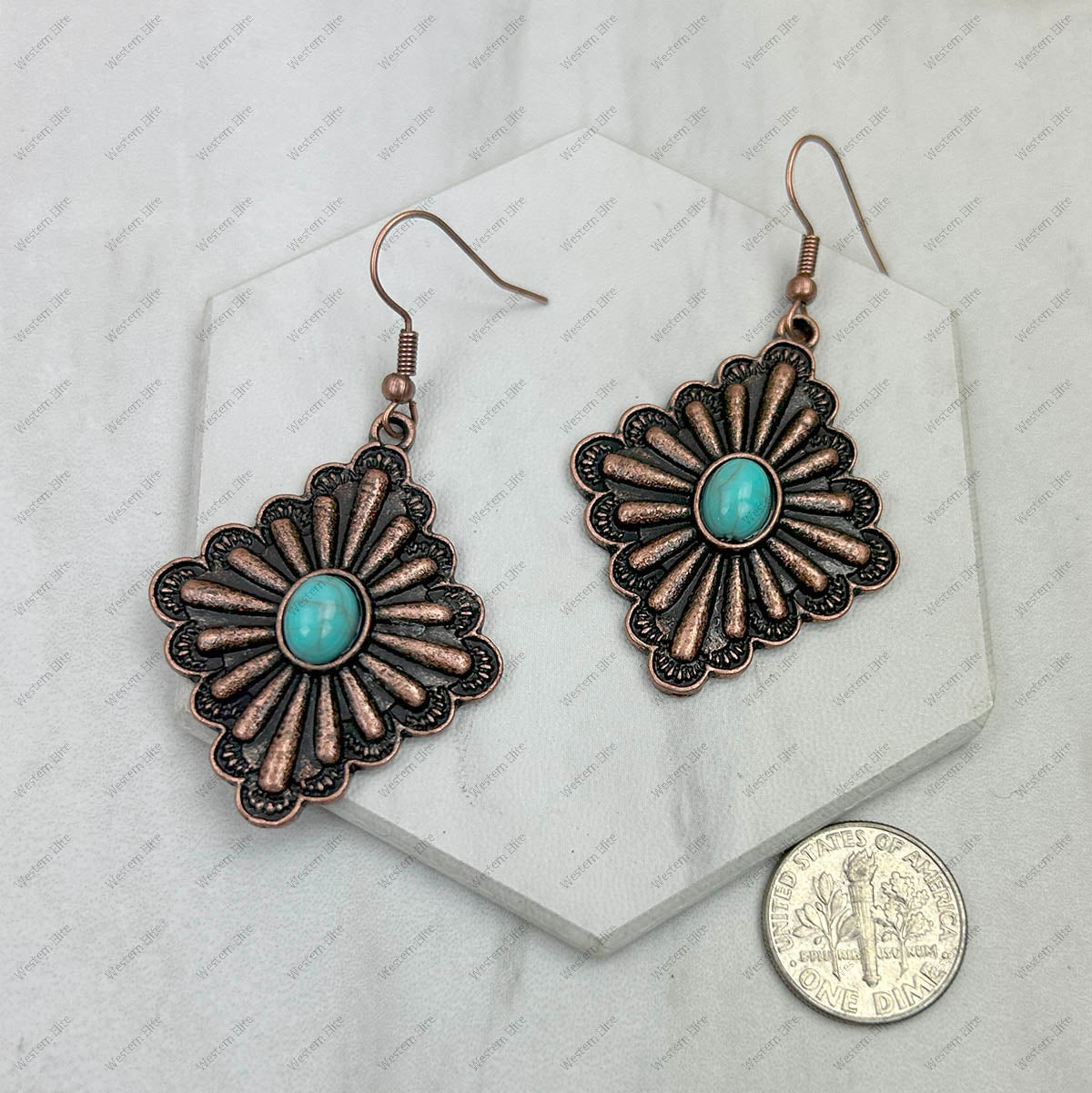 CER240805-03-COPPER-BLUE Copper metal with blue turquoise stone Earrings