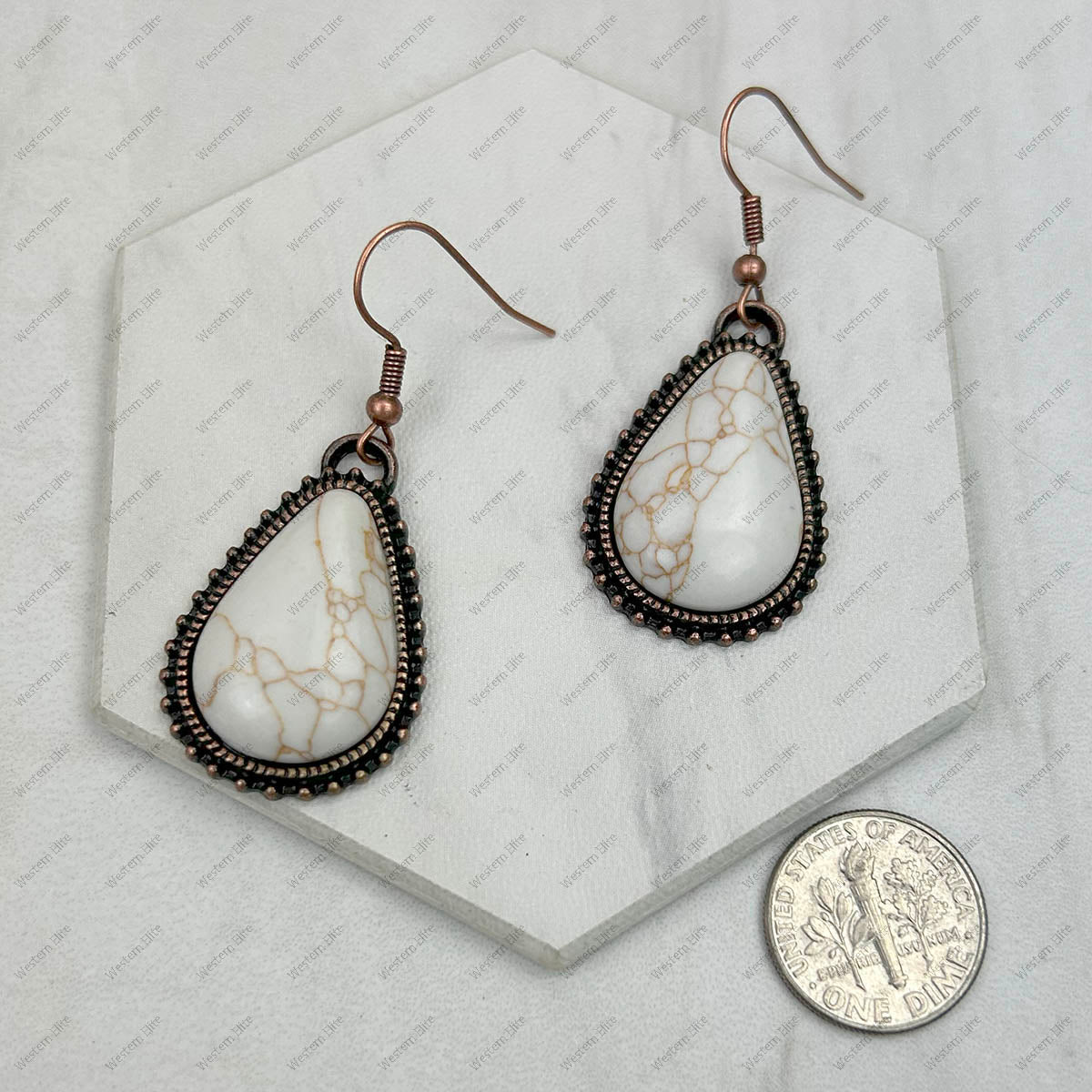 CER240805-04-COPPER-BLUE Copper metal with blue turquoise stone Earrings