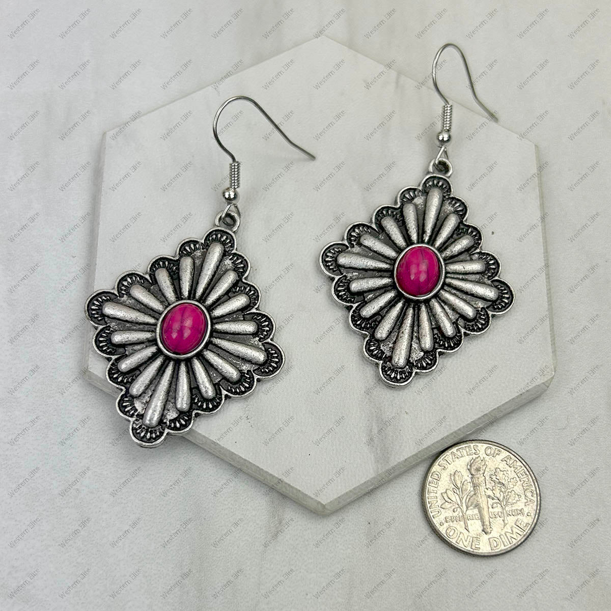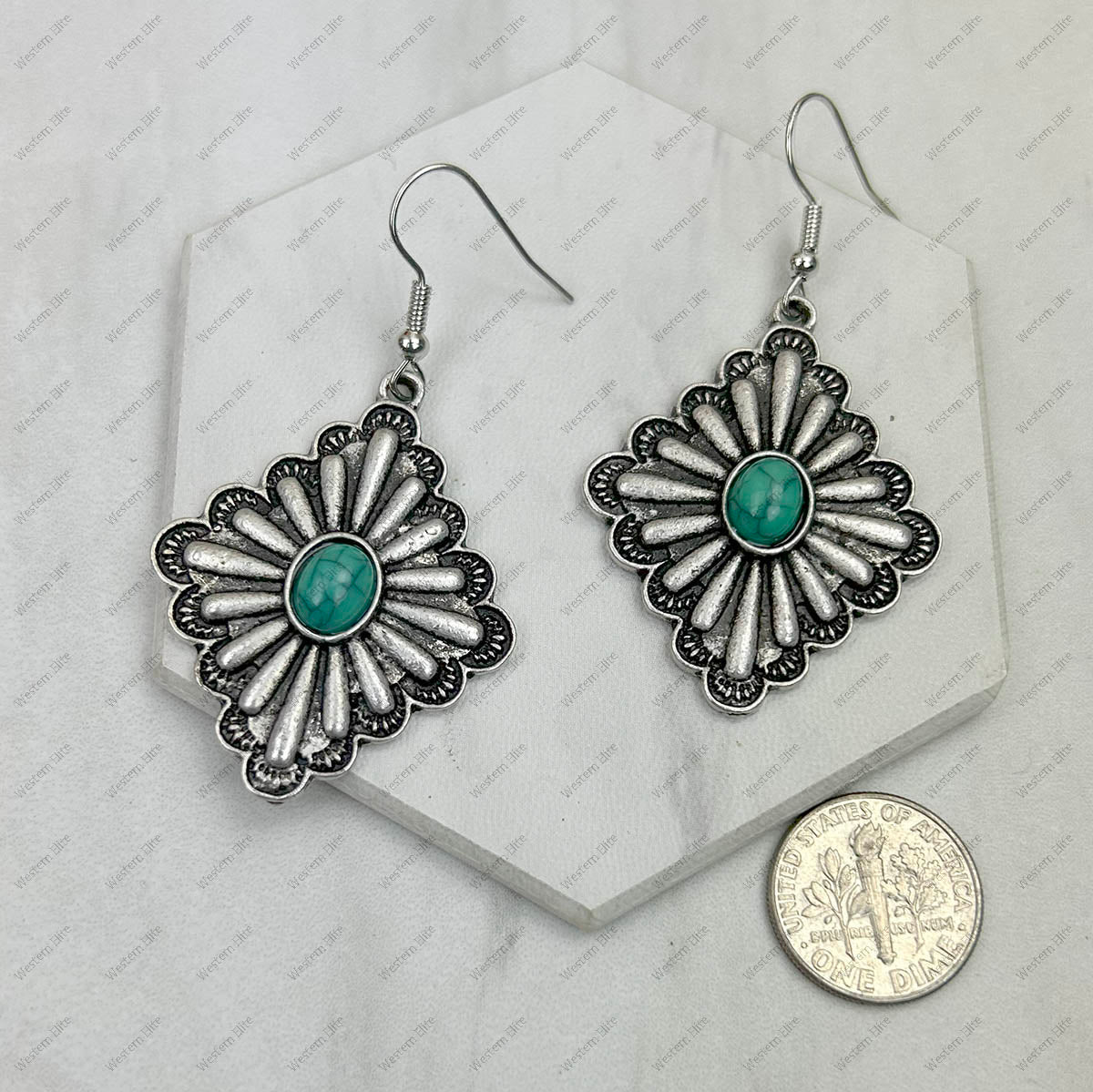 CER240805-03-SILVER-BLUE Silver metal with blue turquoise stone Earrings