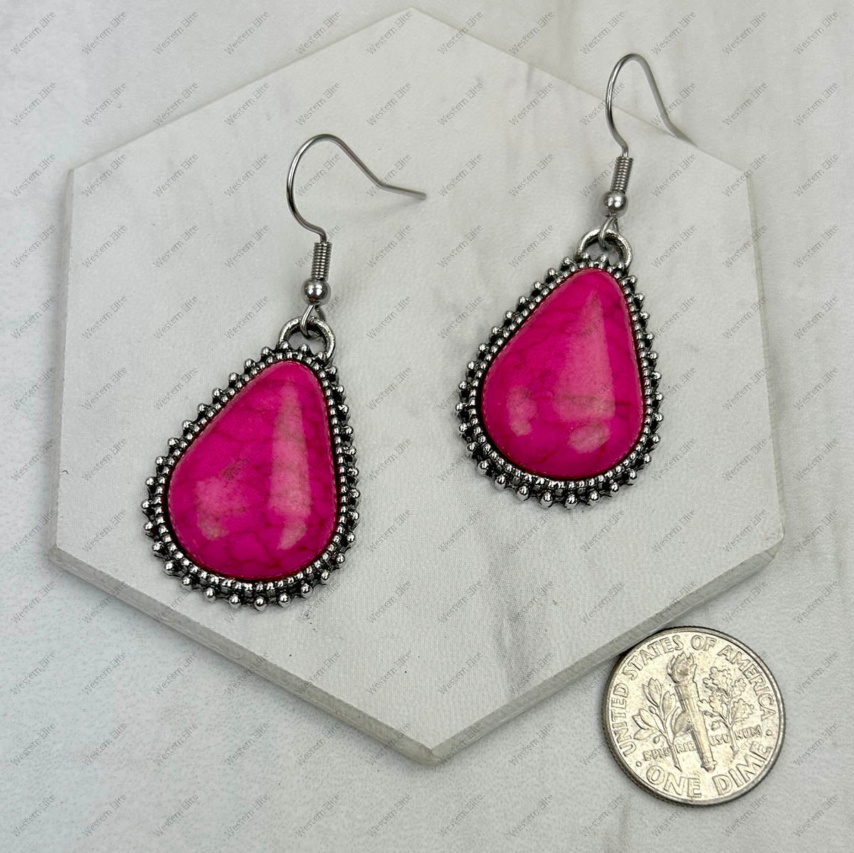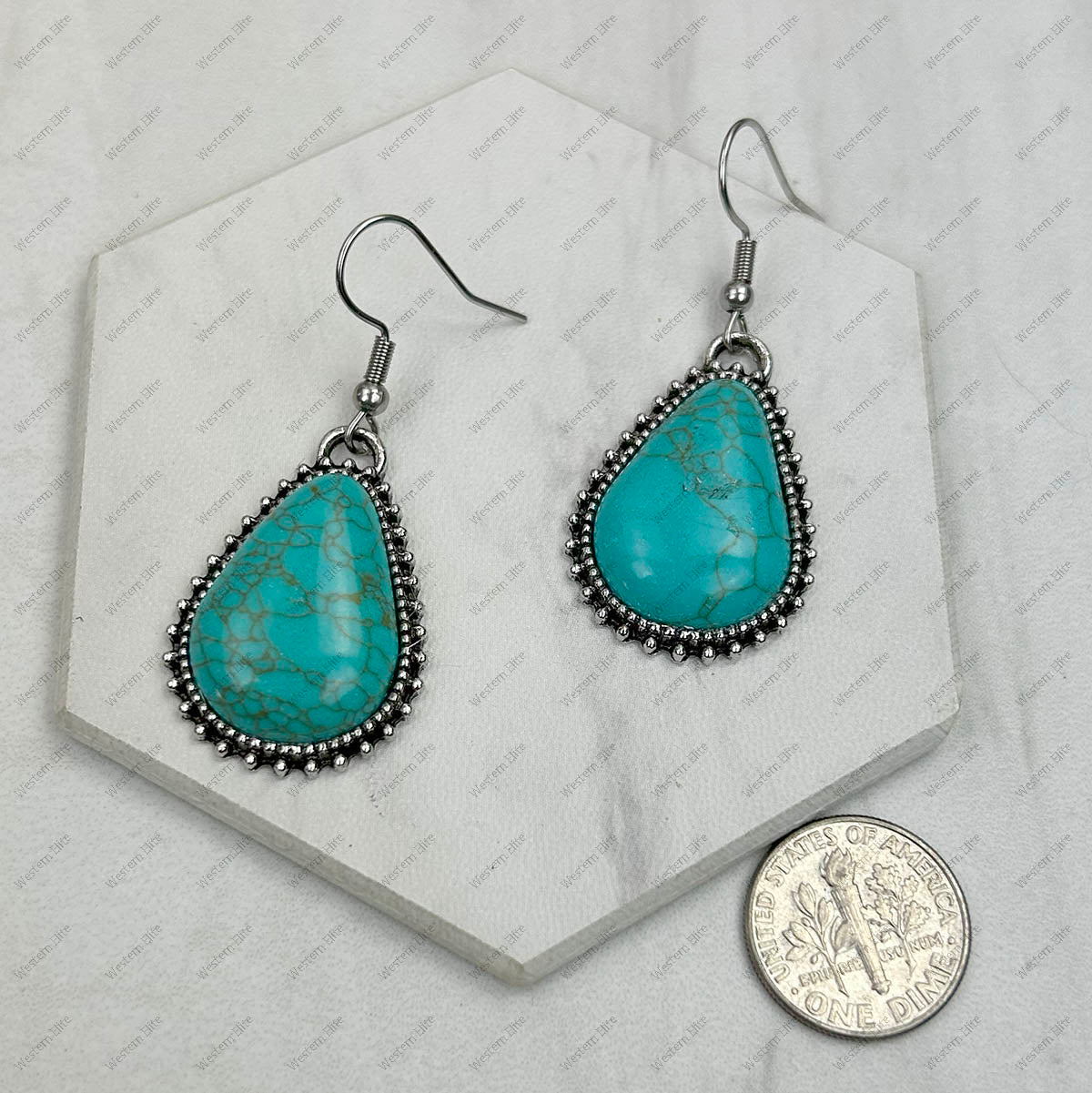 CER240805-04-SILVER-BLUE Silver metal with blue turquoise stone Earrings
