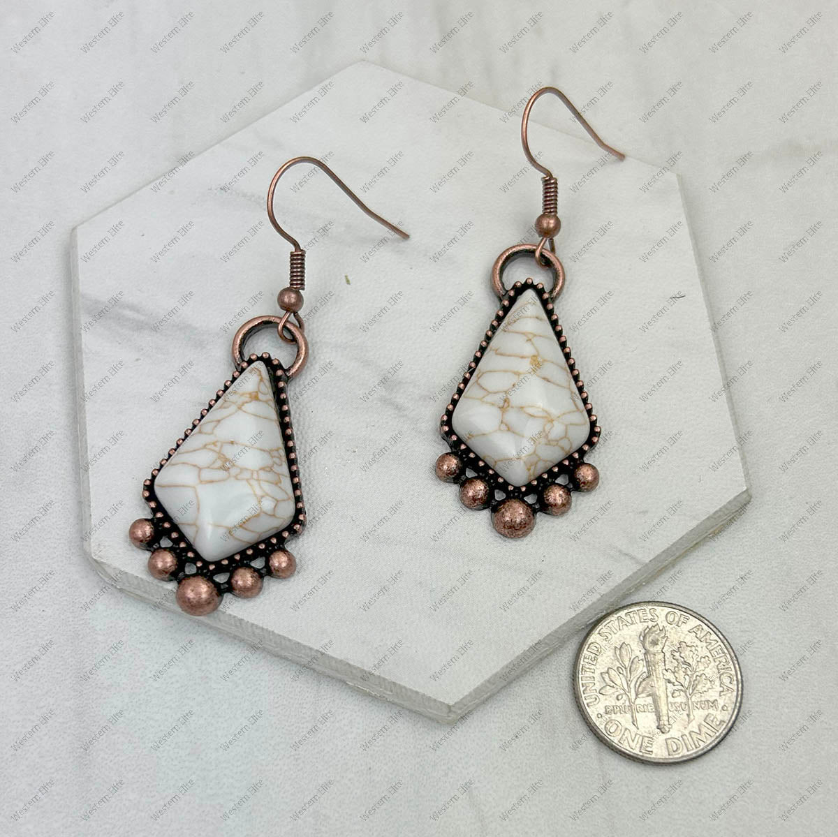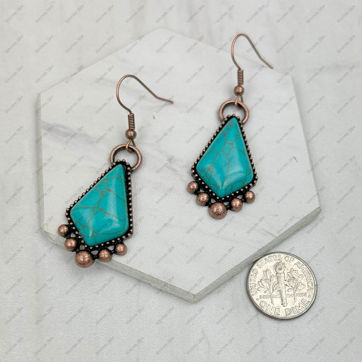 CER240805-05-COPPER-BLUE Copper metal with blue turquoise stone Earrings