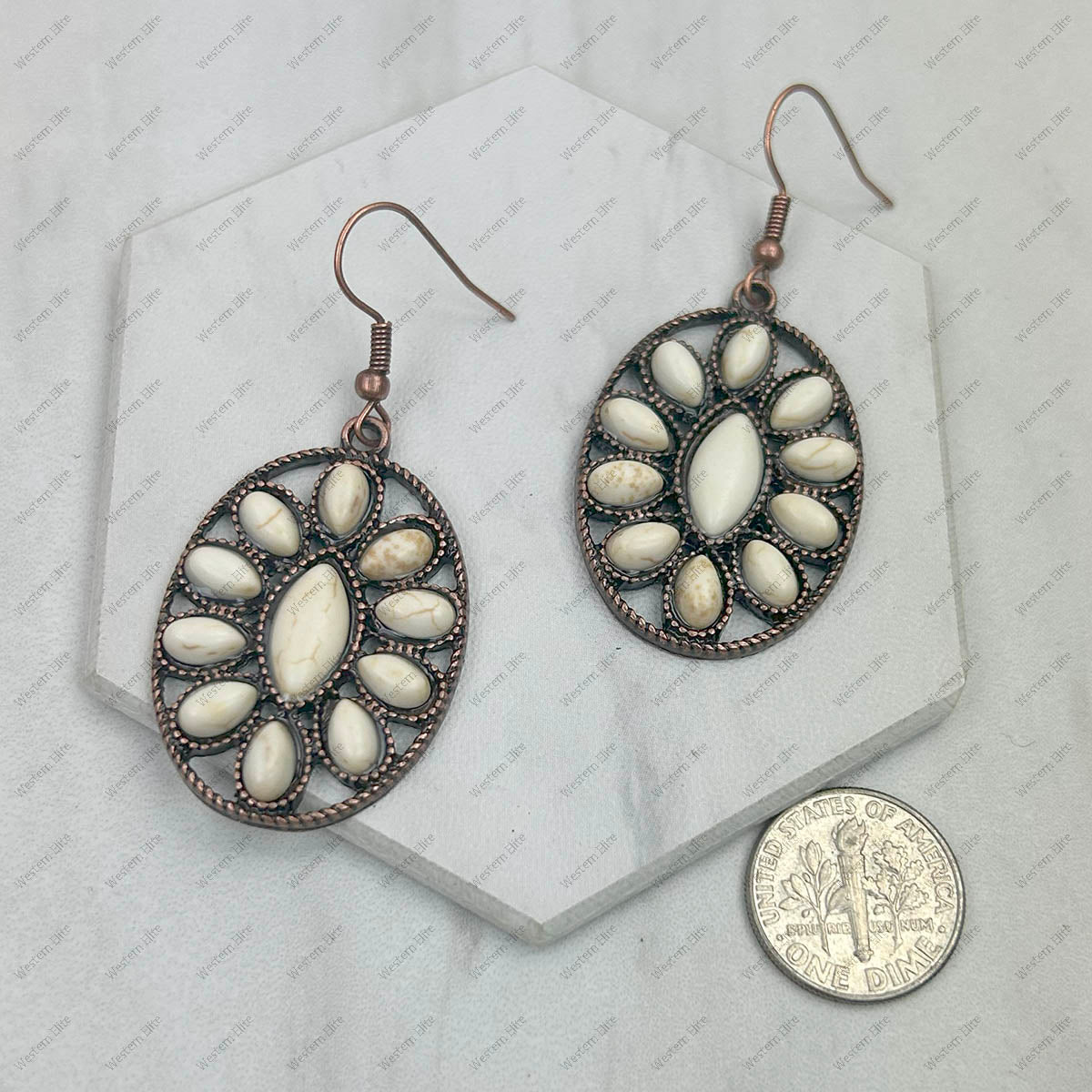 CER240805-06-COPPER-BLUE Copper metal with blue turquoise stone Earrings