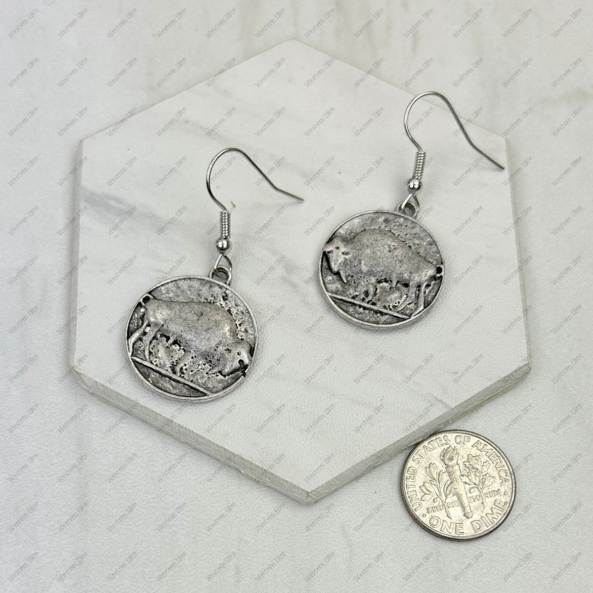 CER241125-11-SILVER Silver circle metal buffalo Earrings