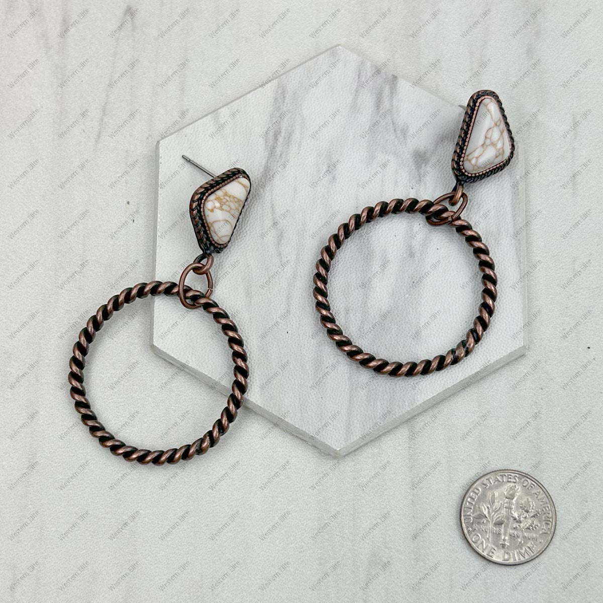 ERZ231205-118 Copper metal circle with white stone Earrings