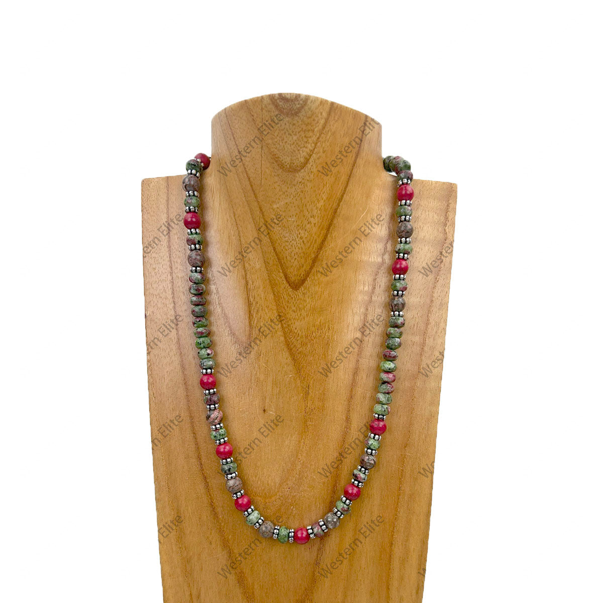 NKZ240414-15 19 inches green roundel jasper and red color stone beads Necklace