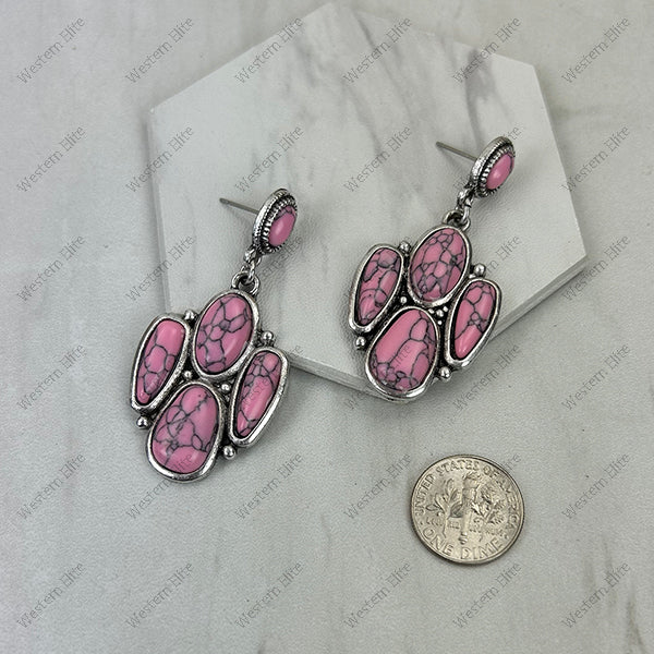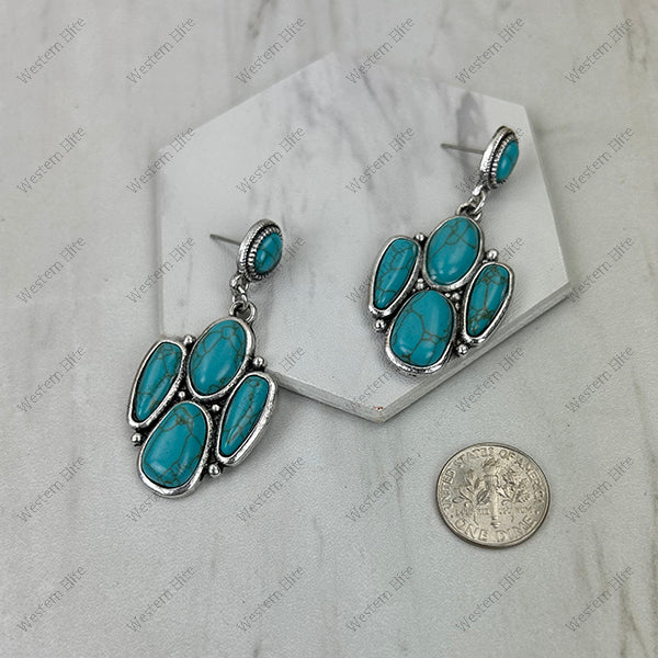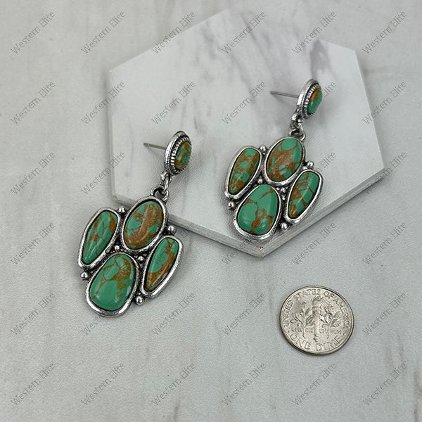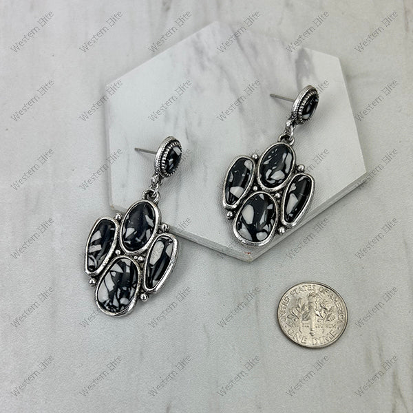 ER251230-01-BLUE Silver metal with blue turquoise stone paw print Earrings