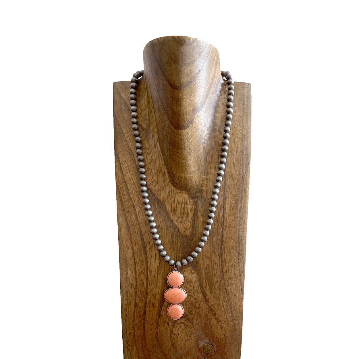 NKS250907-01-BLUE 23 '' L 8mm silver Navajo pearl bead with 3 blue turquoise stone pendent Necklace