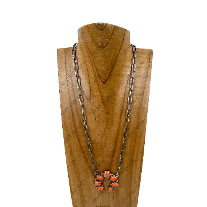 NKY240125-05-ORANGE 22'' silver metal chain with orange horseshoe Necklace