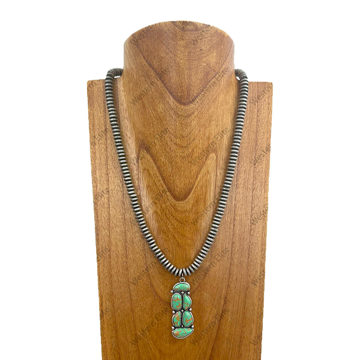 NKY241126-01 21 Inches silver Navajo pearl beads with orange stone pendent