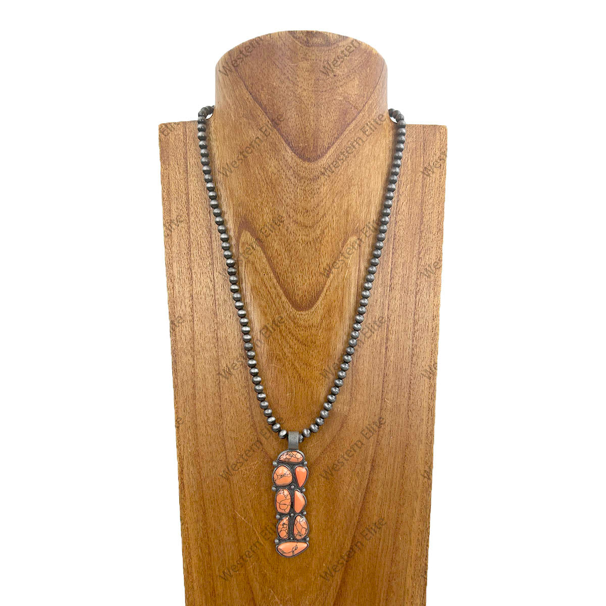 NKY241126-03 22 Inches silver Navajo pearl beads with green stone pendent Necklace