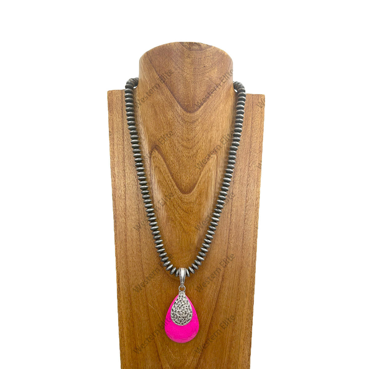 NKY241126-21 21'' Silver Navajo pearl beads with blue turquoise teardrop pendent Necklace