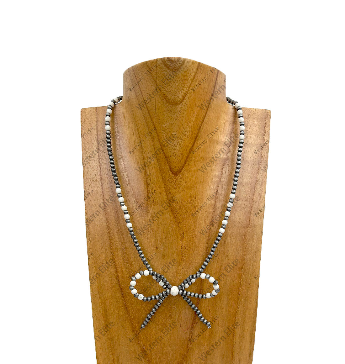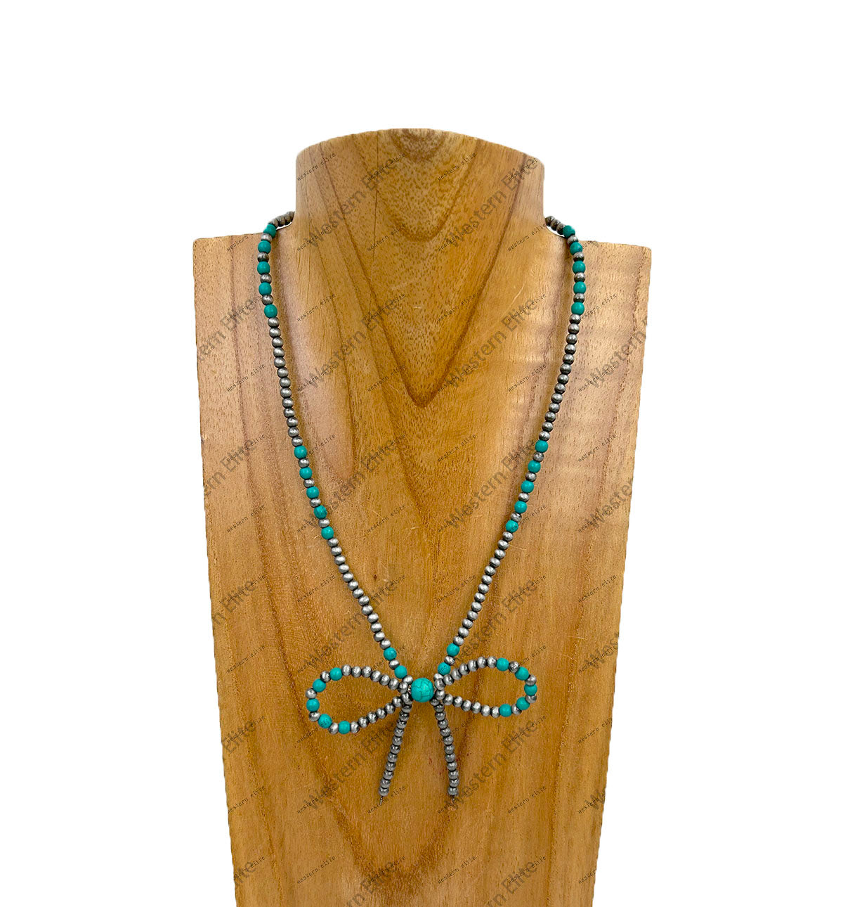 NKY250109-25 16 inches silver Navajo pearl and green turquoise stone beads with butterfly tie Necklace