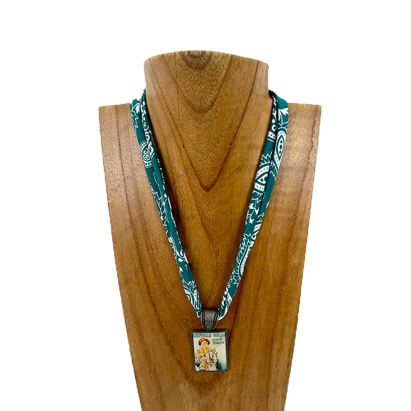 NKY251228-03 Beige Silk feeling scarf with western pendent Necklace