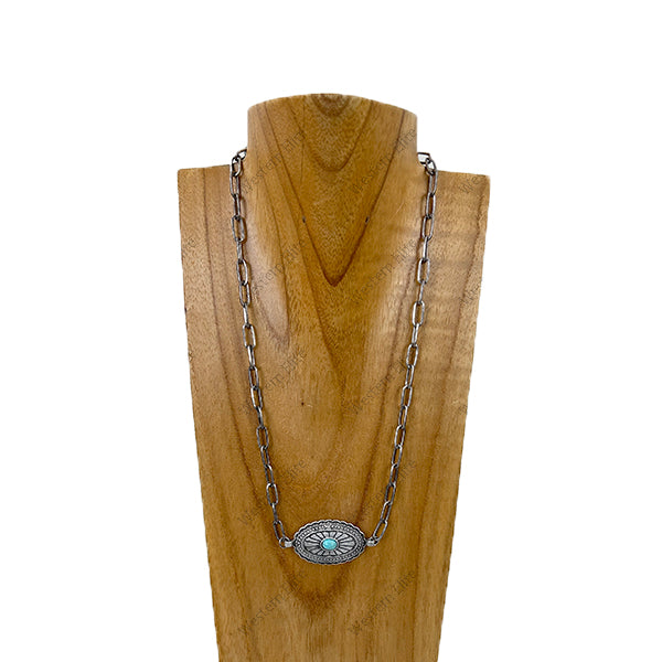 NKY251231-05 21'' Silver metal chain with blue turquoise stone oval pendent Necklace
