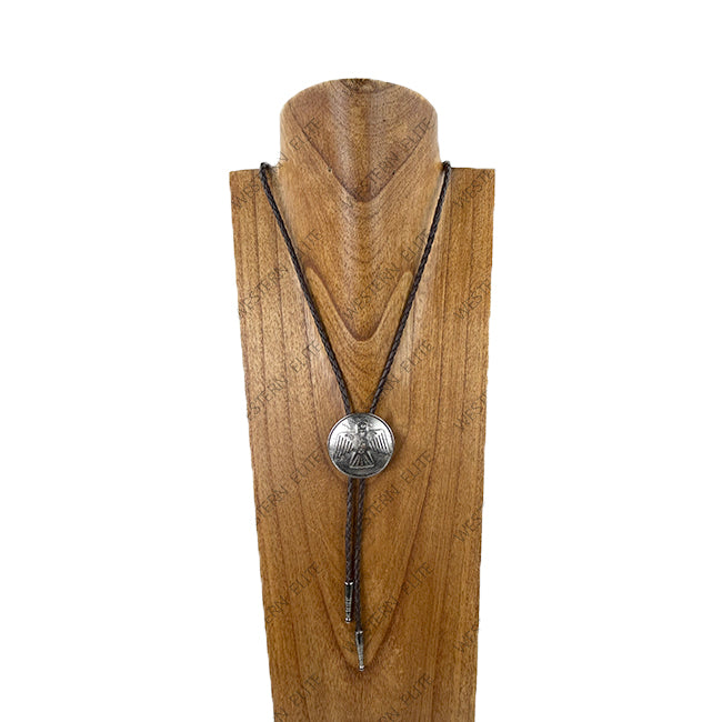 NKY251231-11 Brown leather with silver metal Eagle adjustable Necklace