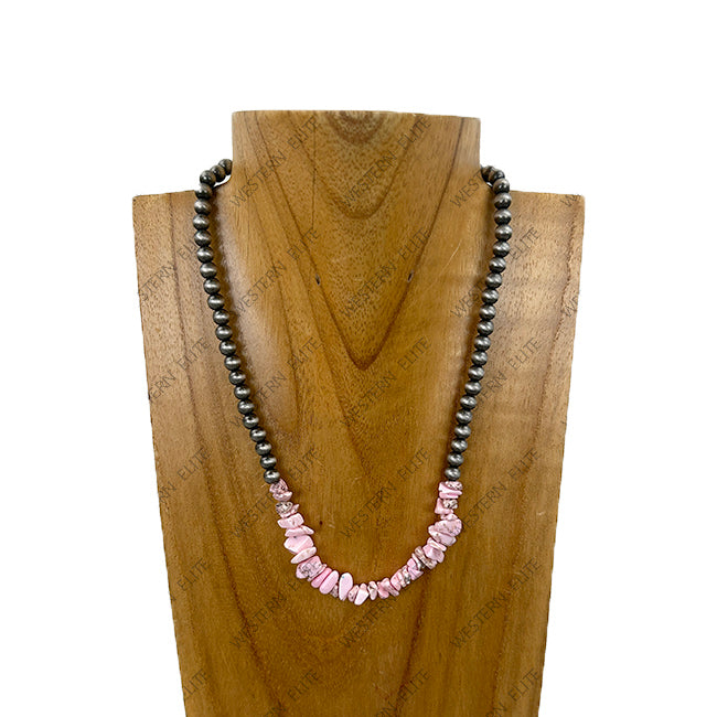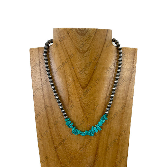NKY251231-32 16'' silver Navajo pearl beads with green turquoise chips Necklace