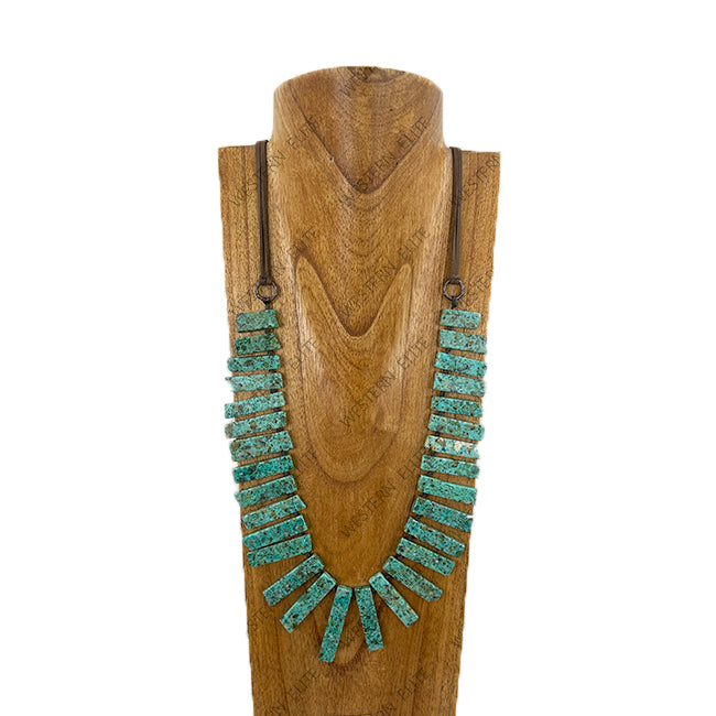 36'' brown leather with green jasper bar Necklace