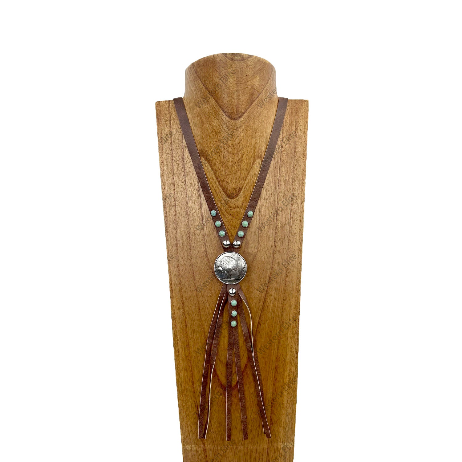 NKZ190825-18 Brown leather with silver western buffalo metal Pendent Necklace