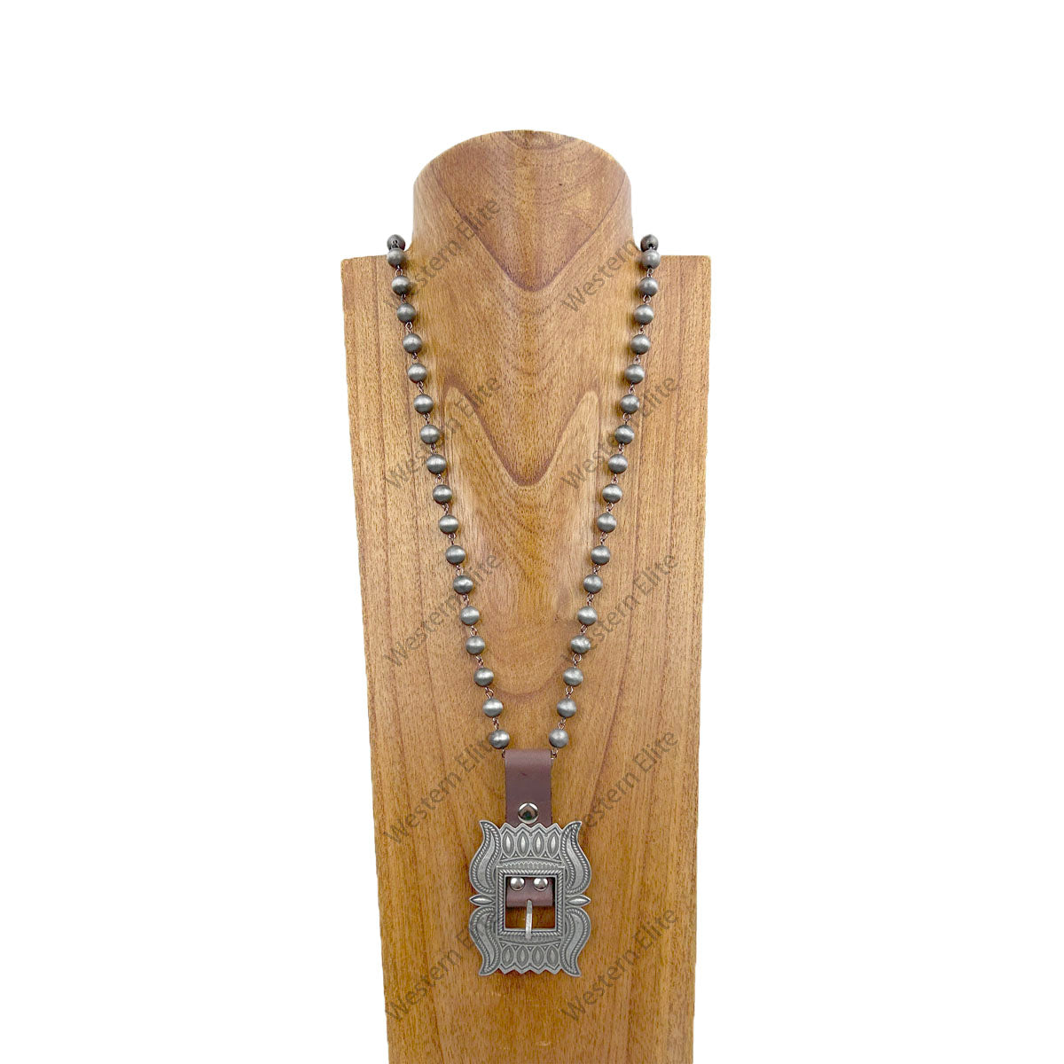 NKZ240519-01 33 Inches silver Navajo pear beads with silver belt buckle pendent Necklace