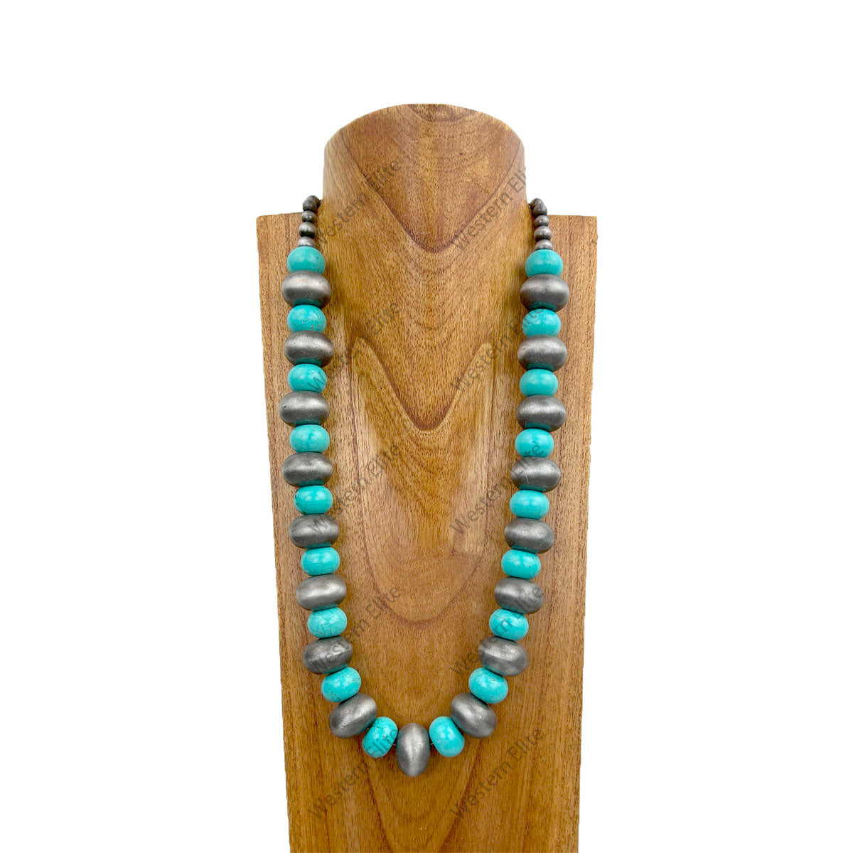 NKZ240602-01 26 inches silver roundel Navajo pearl and blue turquoise stone beads Necklace