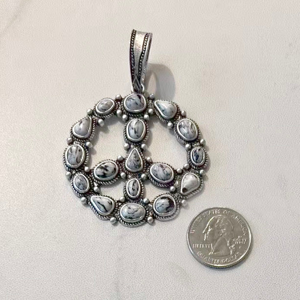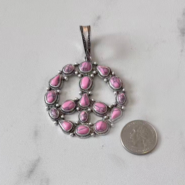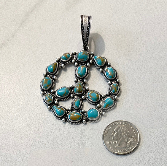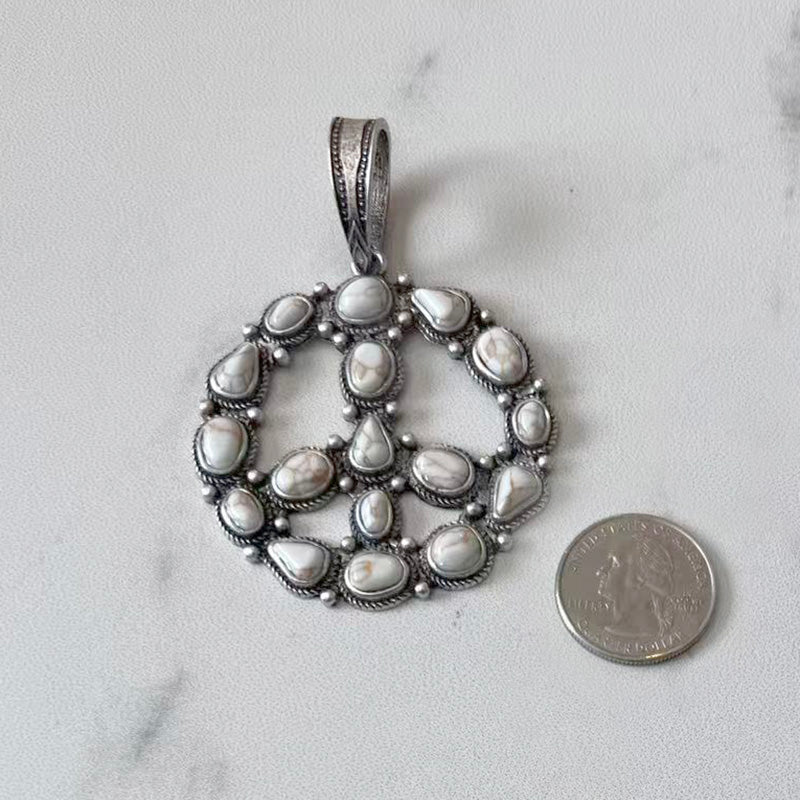 PDS250730-01-GREEN 55 mm silver metal with green turquoise stone peace sign pendent