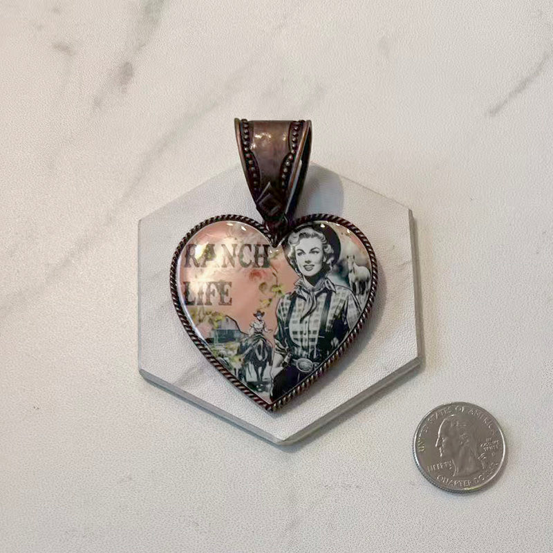 PDZ250906-01-COPPER 50mm Western copper-plated heart Pendent