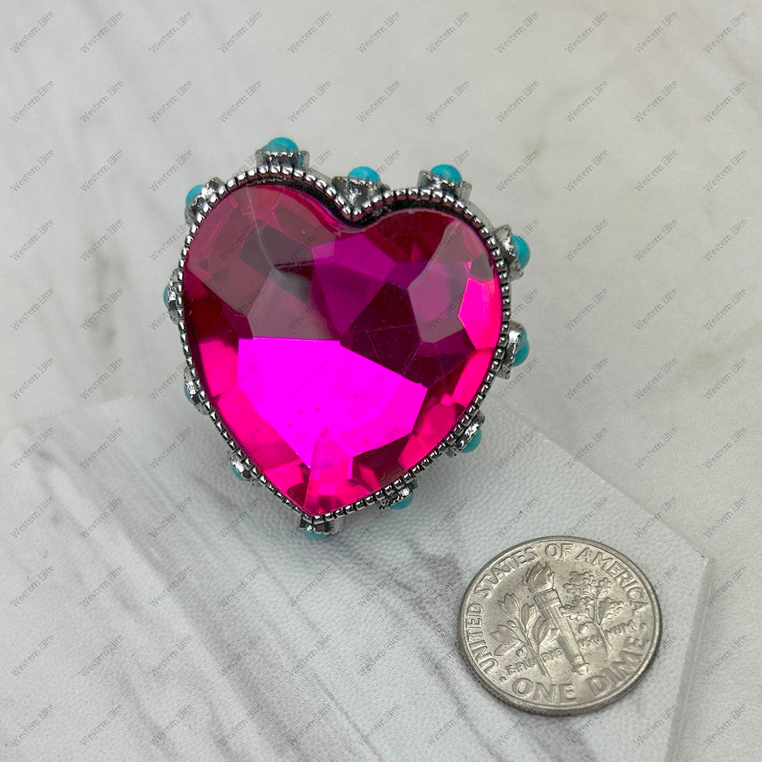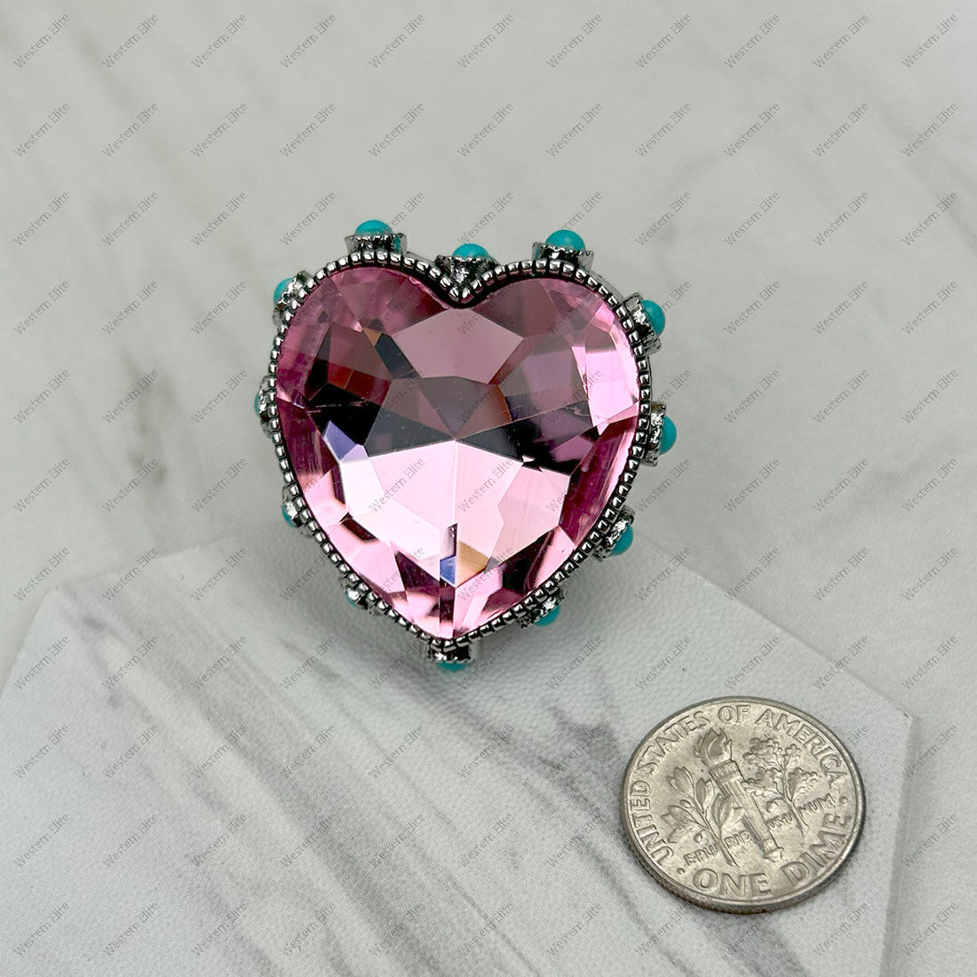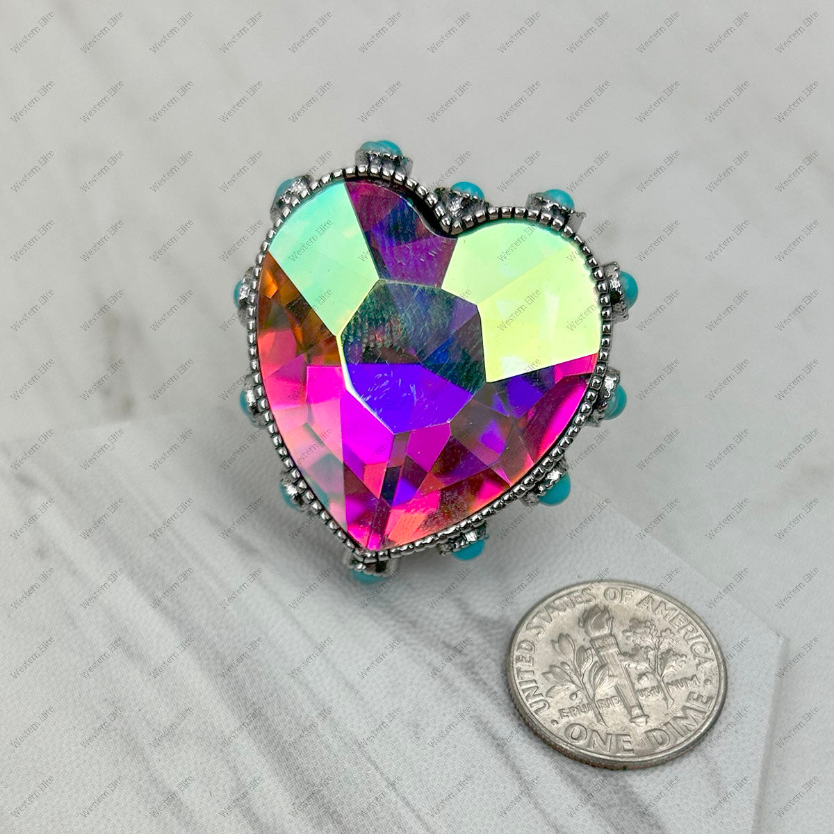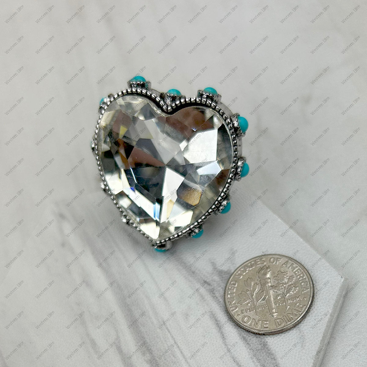 Silver metal with clear crystal and blue turquoise stone beads Ring