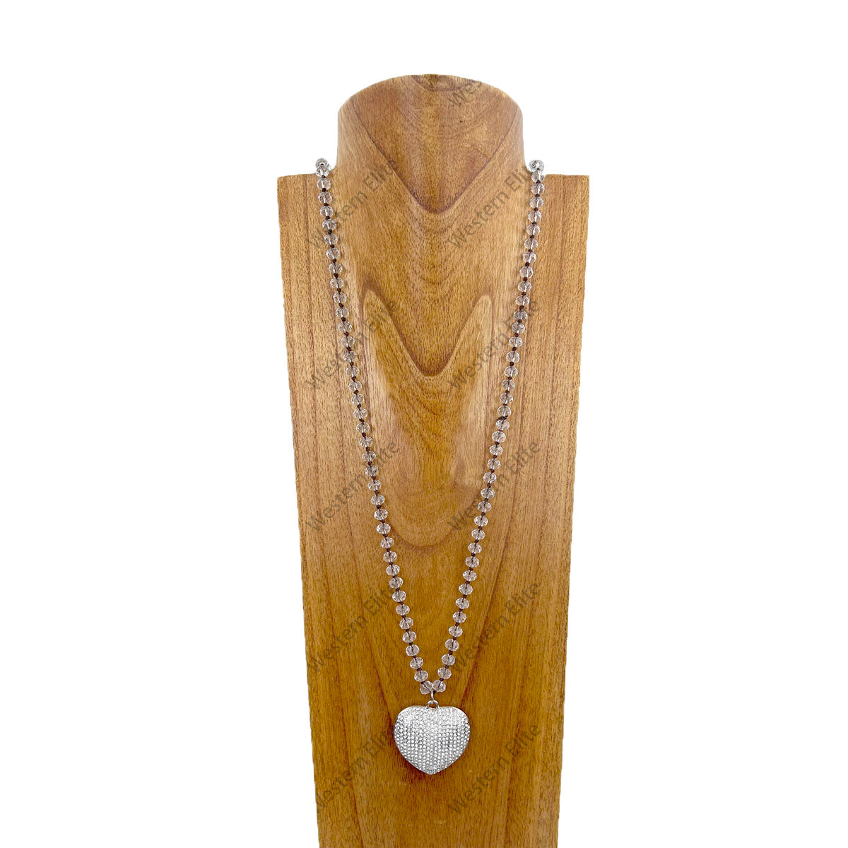 32 inches clear crystal beads string with silver metal heart pendent Necklace