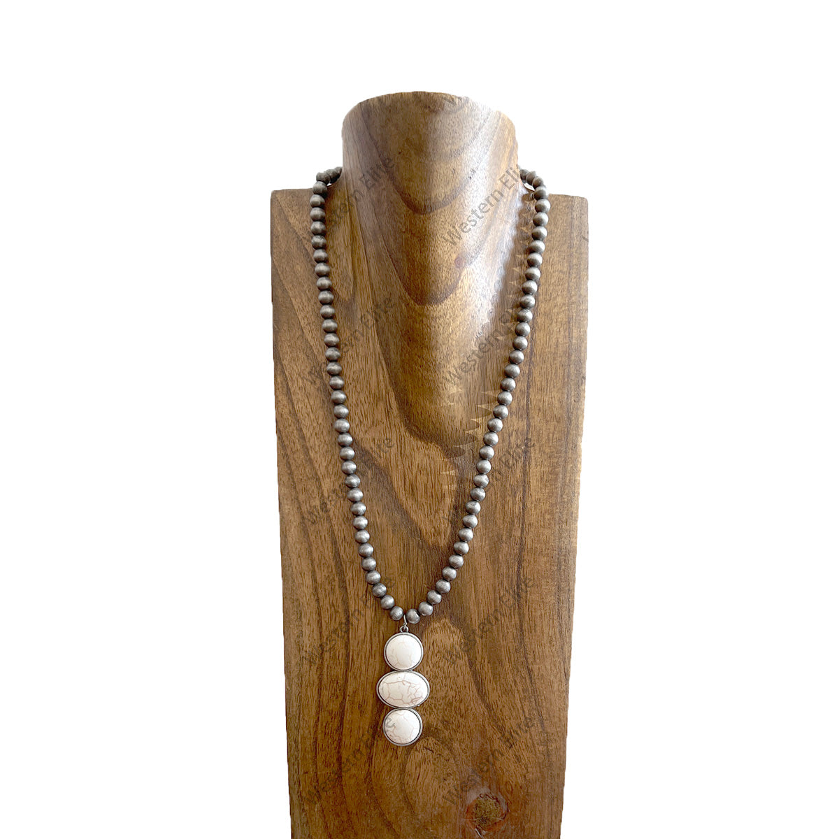 NKS250907-01-BLUE 23 '' L 8mm silver Navajo pearl bead with 3 blue turquoise stone pendent Necklace