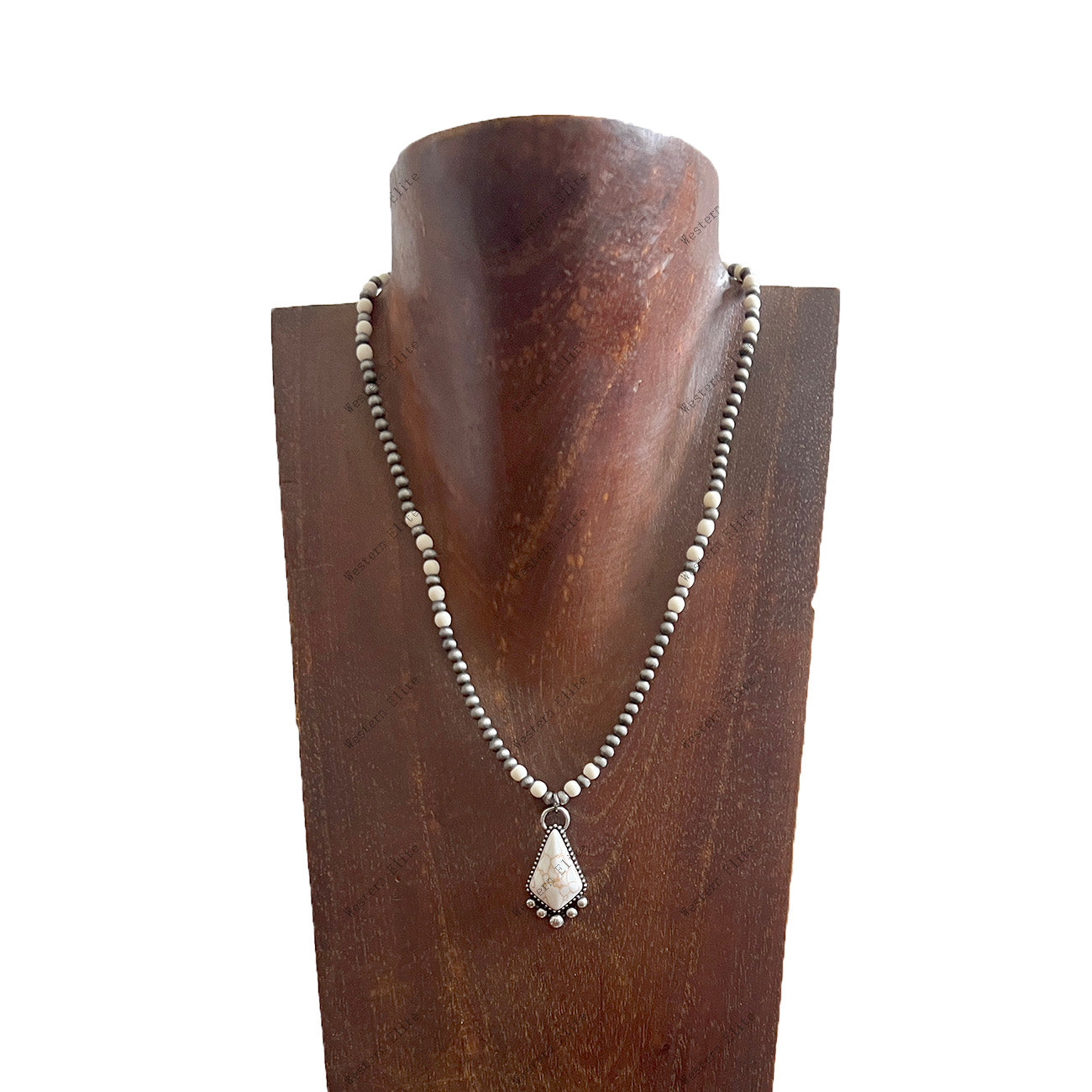 NKS250908-01-BLUE 17'' L 4mm Blue TQ & silver Navajo pearl beads with diamond shape blue TQ pendent Necklace