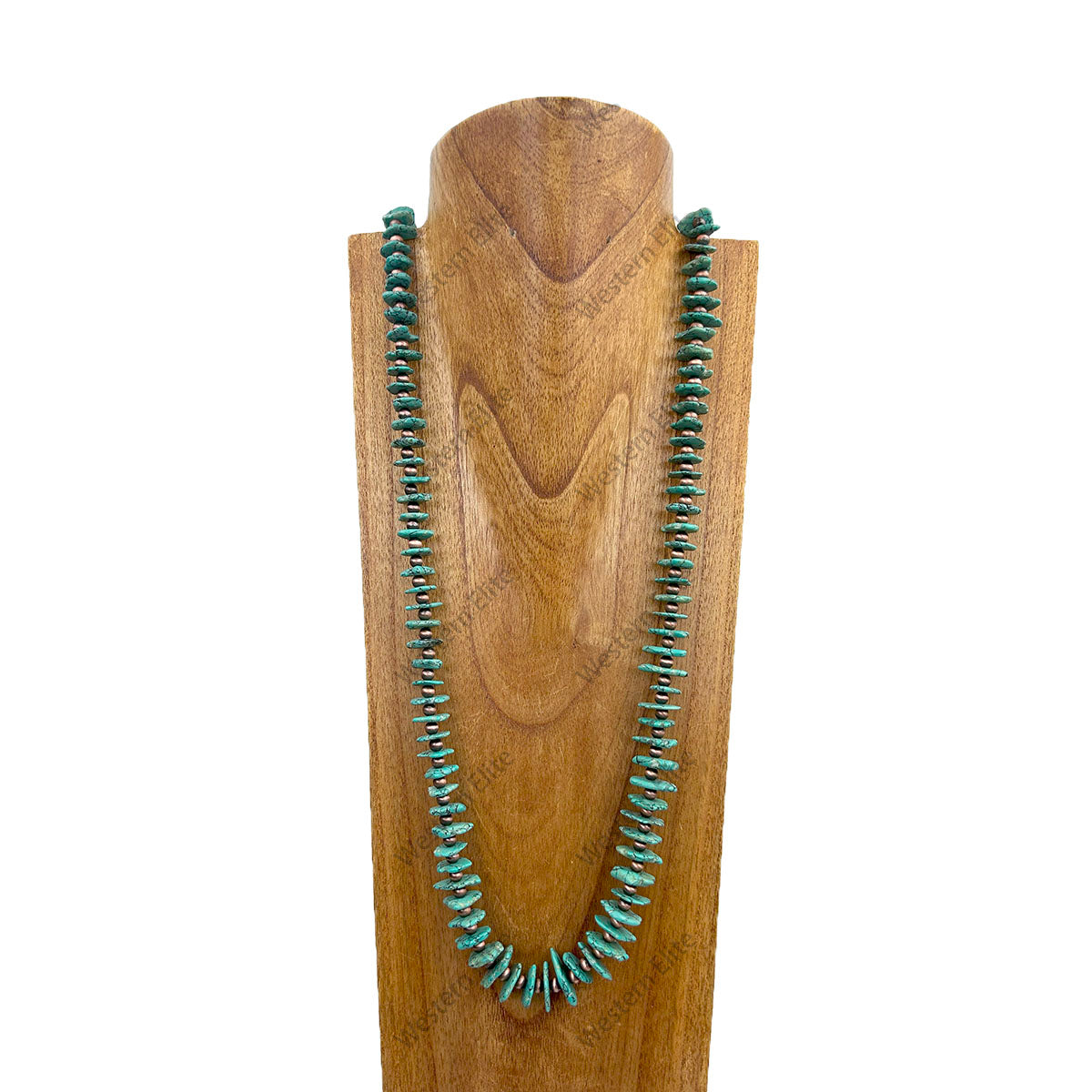 NKY250121-86 40 inches silver Navajo pearl with flat blue turquoise stone chips Necklace