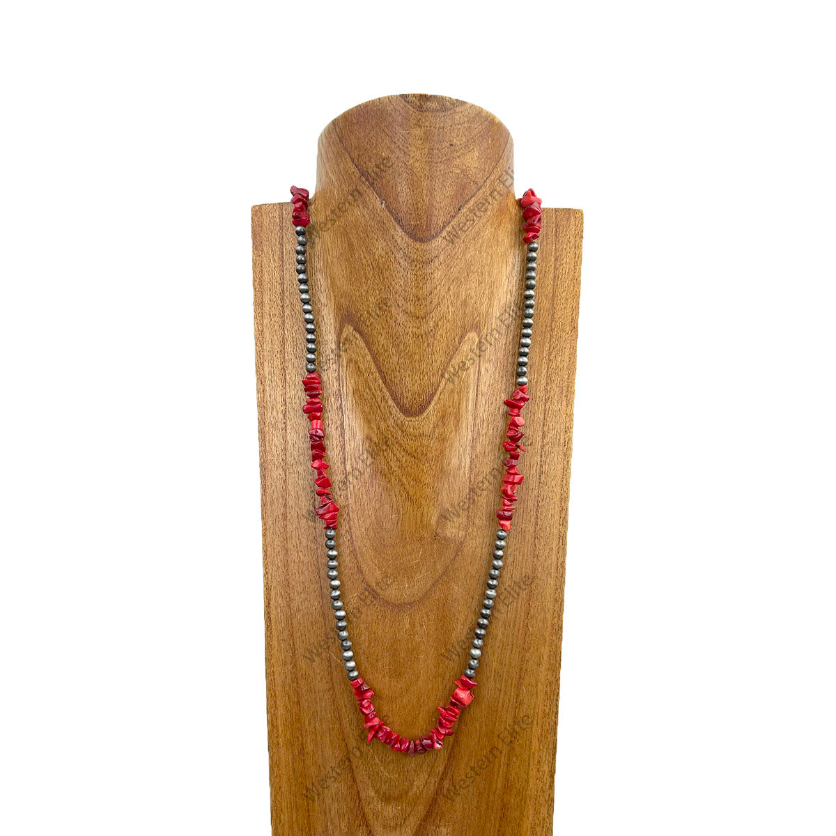 NKY250121-87 40 inches silver Navajo pearl with red coral chips Necklace
