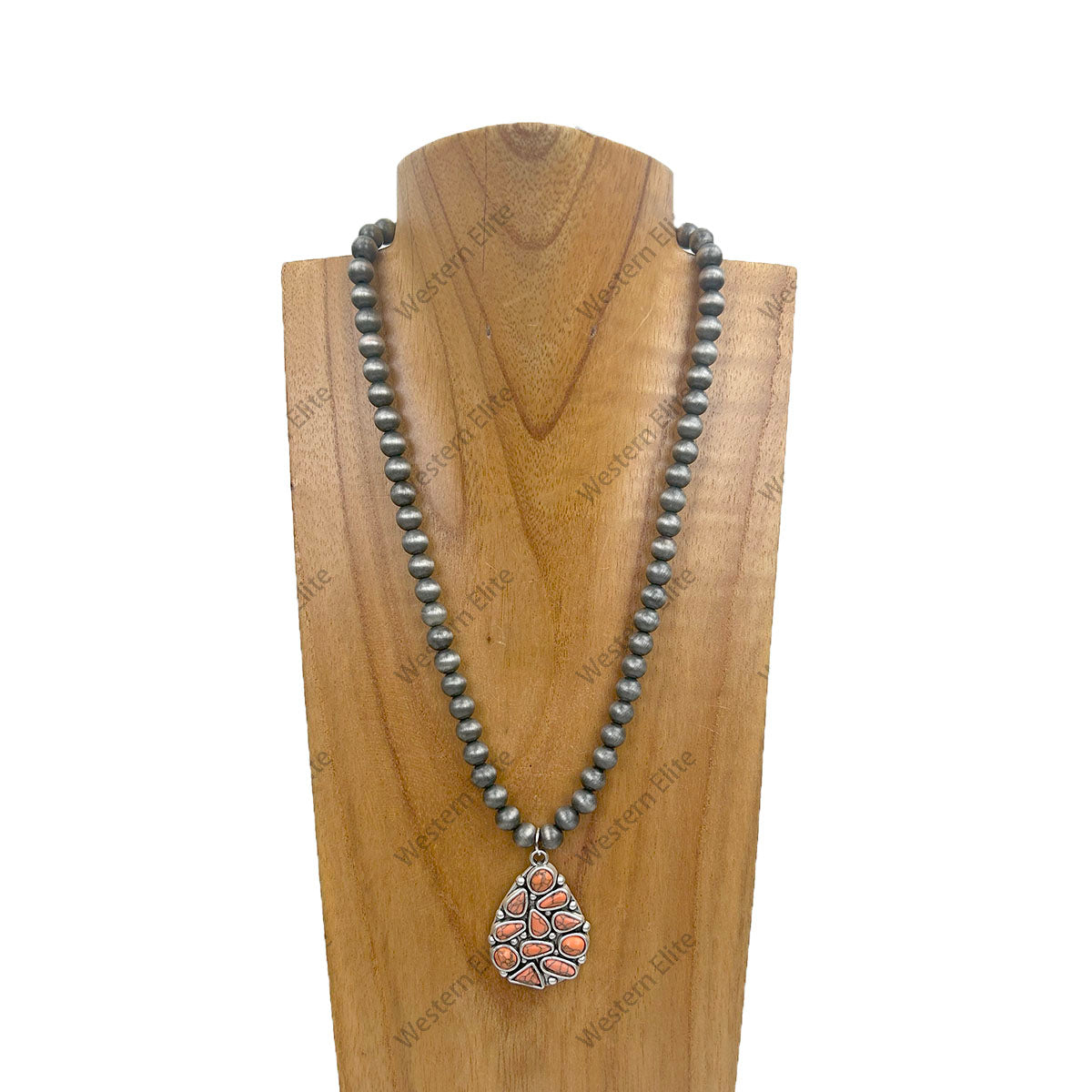 NKY250330-05 18 inches Silver roundel Navajo pearl beads with blue Turquoise stone Teardrop pendent Necklace