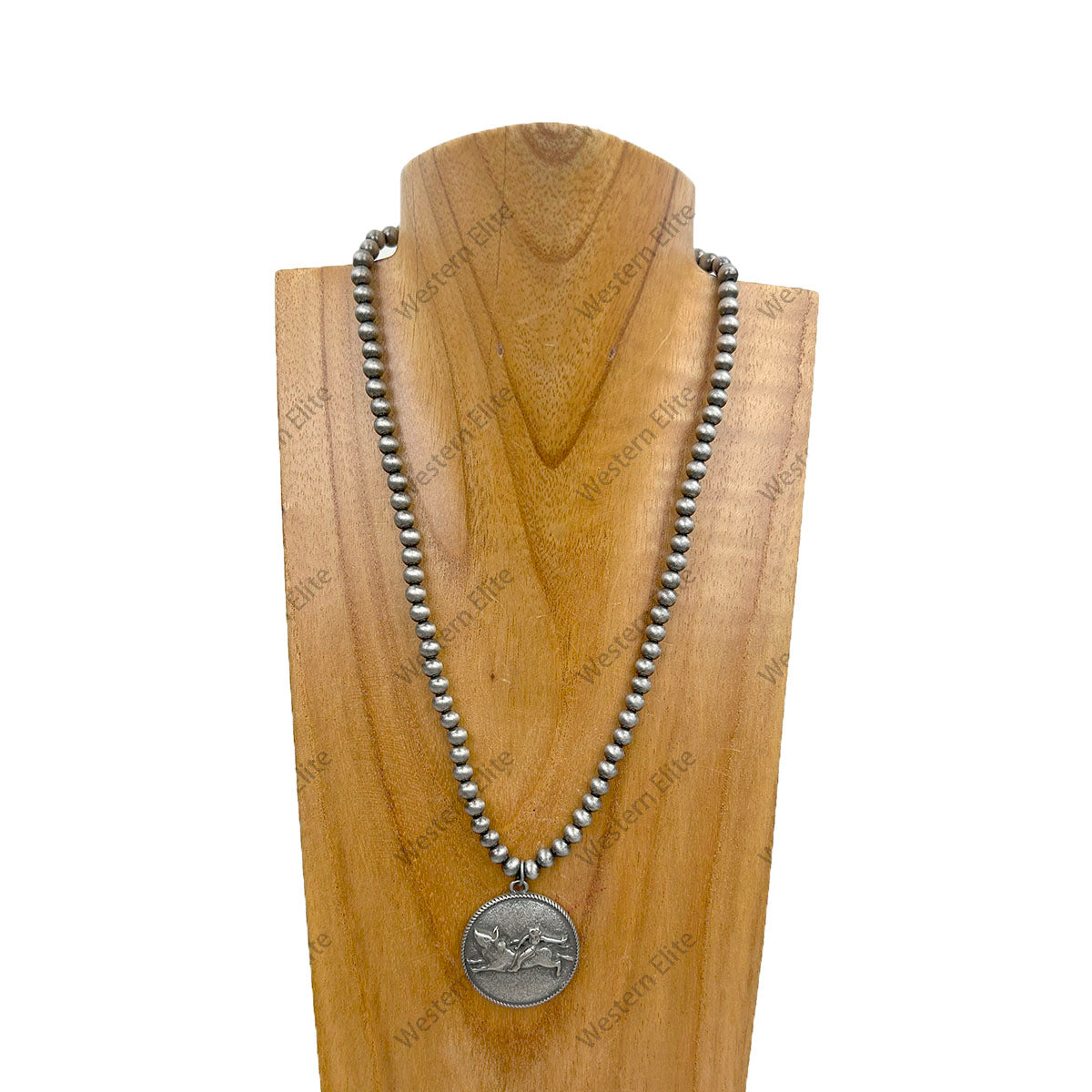 18'' 6mm Silver Navajo pearl beads with western cowboy pendant Necklace