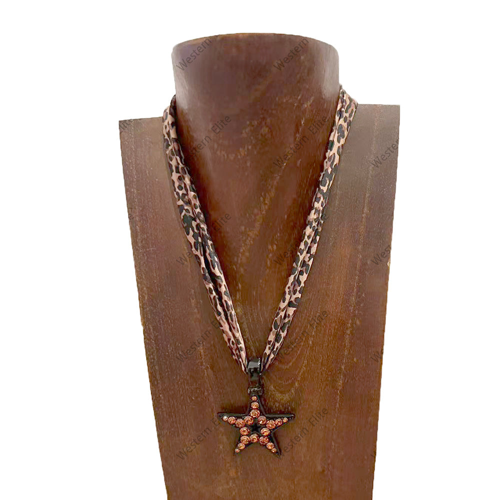 NKS251013-01-LEOPARD 16'' L print scarf Necklace with brown crystal star Pendent