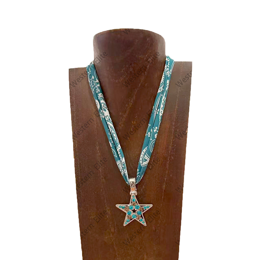16'' L  print scarf Necklace with brown crystal star Pendent