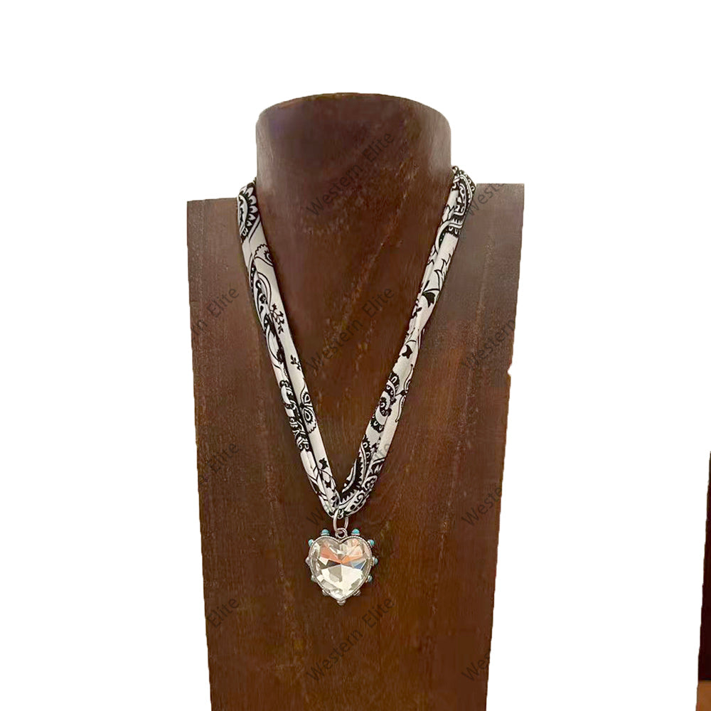 16'' L print scarf Necklace with crystal heart Pendent