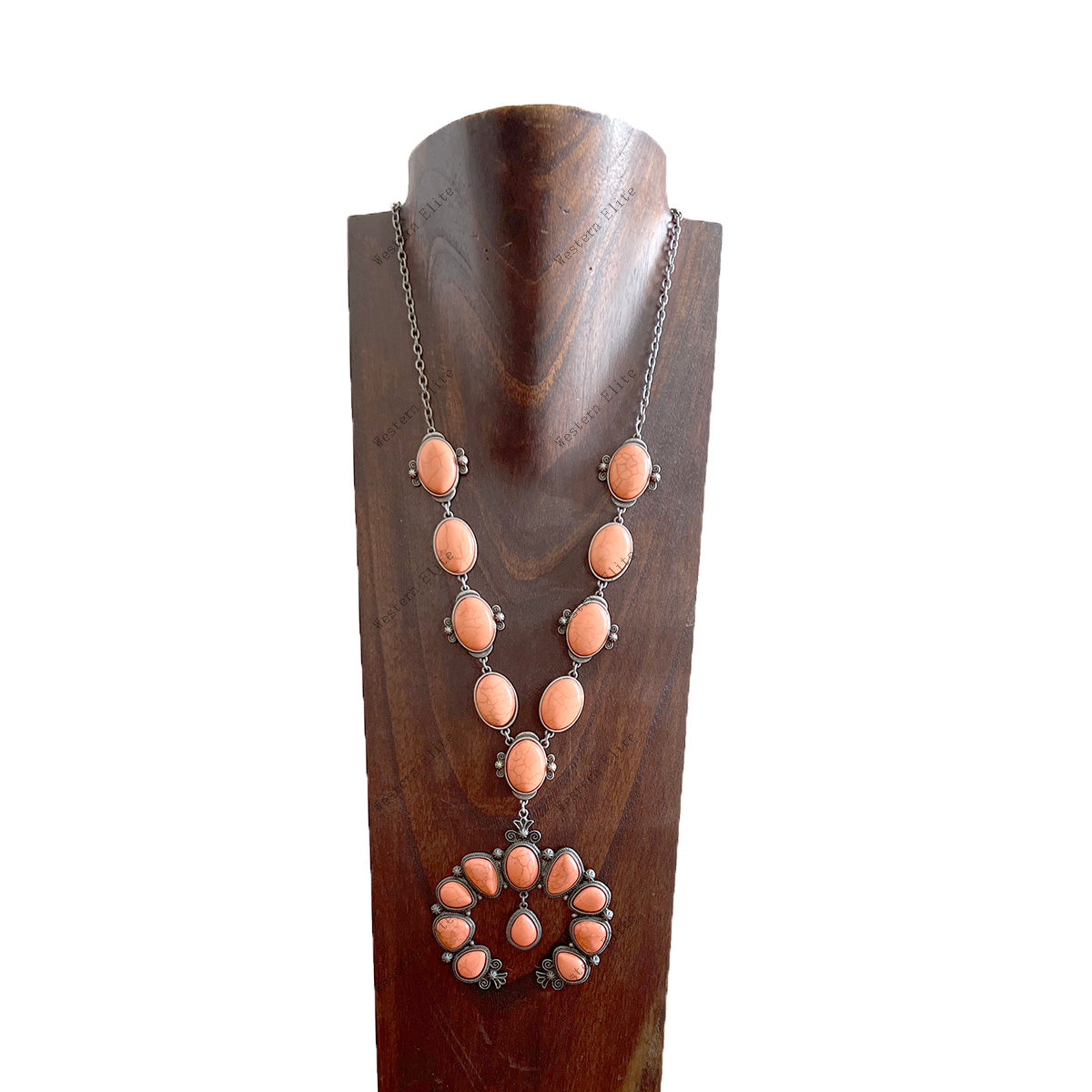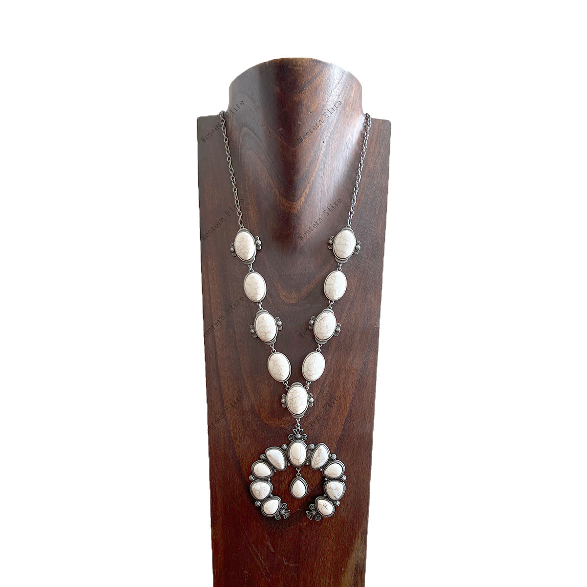 28'' L Blue TQ stone Necklace with big squash blossom pendent