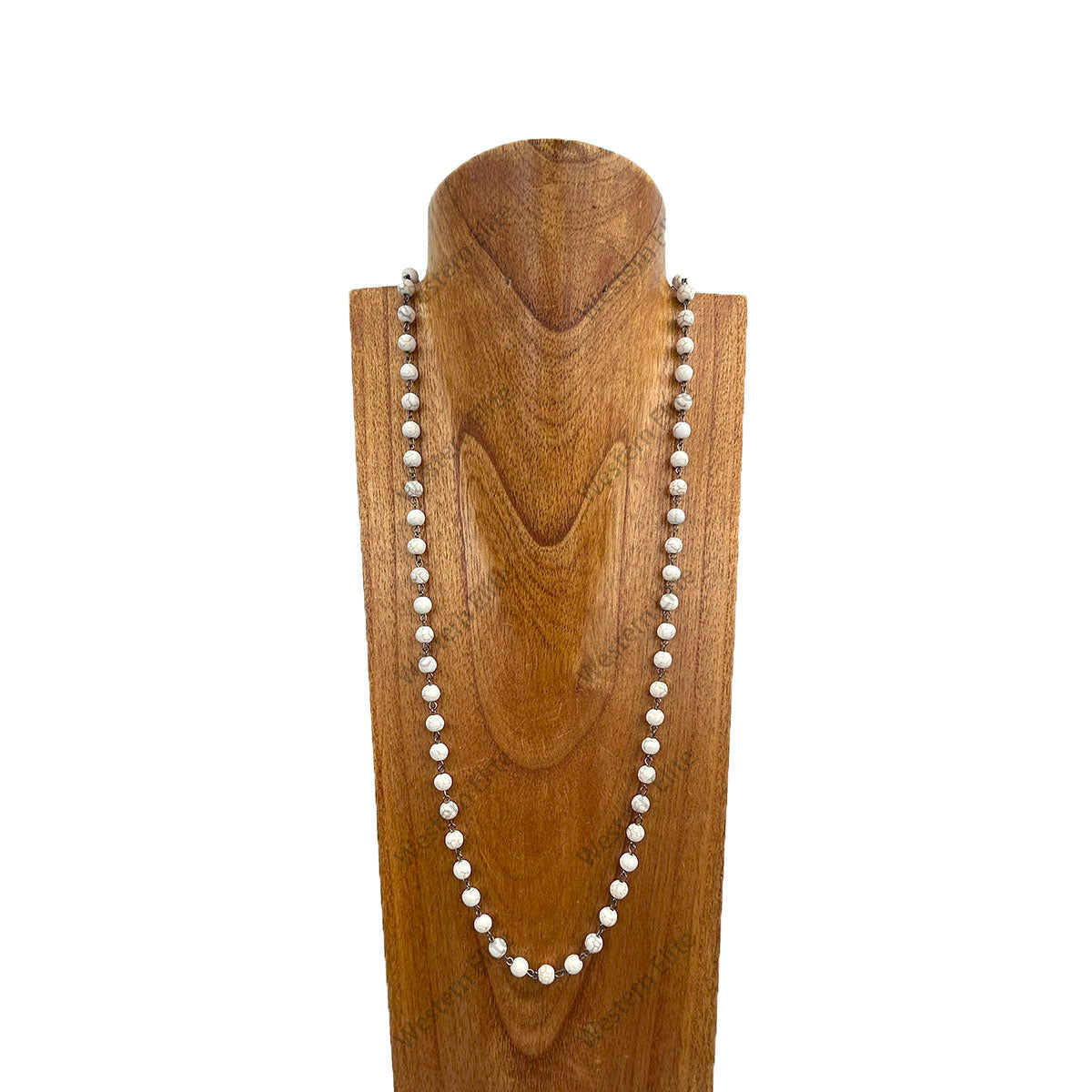 NKY250121-97 36 inches silver metal with white turquoise stone chain Necklace