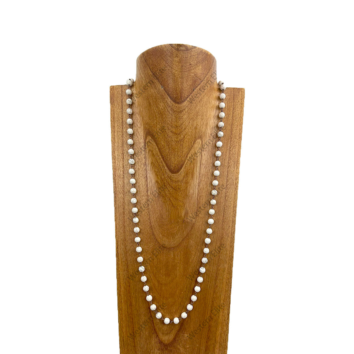 NKY250121-101 36 inches copper metal with white turquoise stone chain Necklace